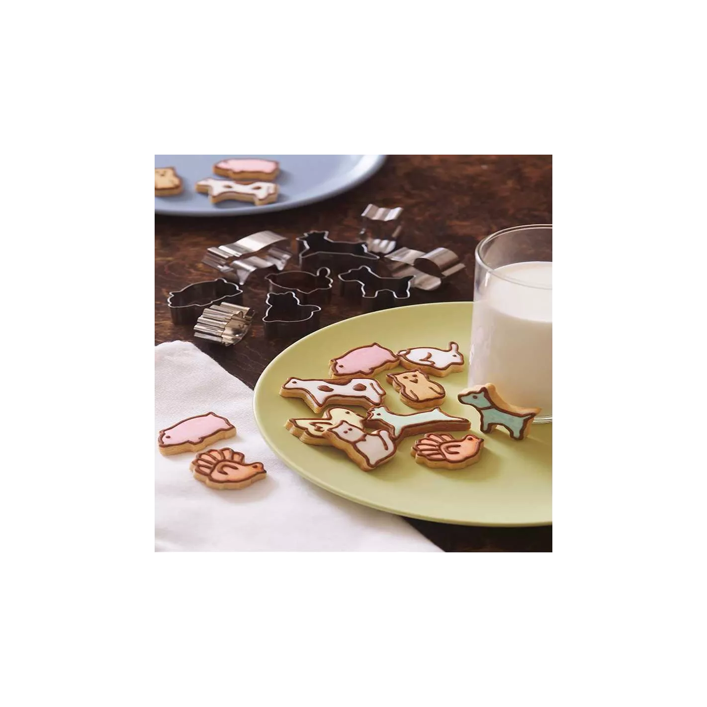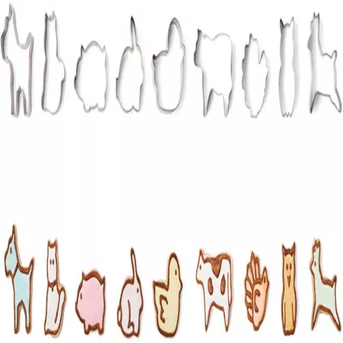 Crea galletas divertidas para decorar con este juego de cortadores de galletas de animales. El juego incluye 9 cortadores de animales: cisne, reno, pollo, cerdo, gato, vaca, conejo, perro, y búho. Estos moldes cortarán y se liberarán fácilmente de la masa, lo que facilitará el proceso de preparación de las galletas. Perfecto para cortar galletas, sándwiches, gelatina, brownies o incluso para manualidades.