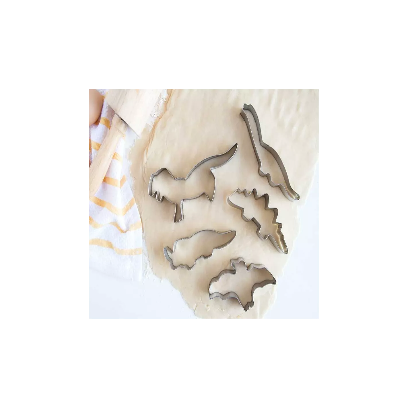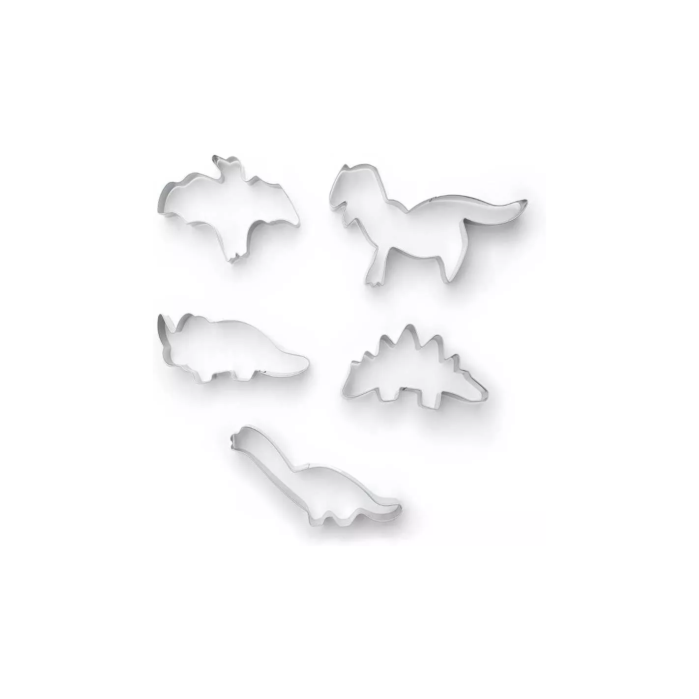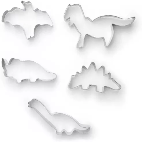 Crea galletas divertidas para decorar con este juego de cortadores de galletas de dinosaurios. El juego incluye 5 cortadores de galletas de los dinosaurios: T-Rex, Triceratops, Stegosaurio, Apatosaurio y Pterodáctilo. Estos moldes cortarán y se liberarán fácilmente de la masa, lo que facilitará el proceso de preparación de las galletas. Perfecto para cortar galletas, sándwiches, gelatina, brownies o incluso para manualidades.