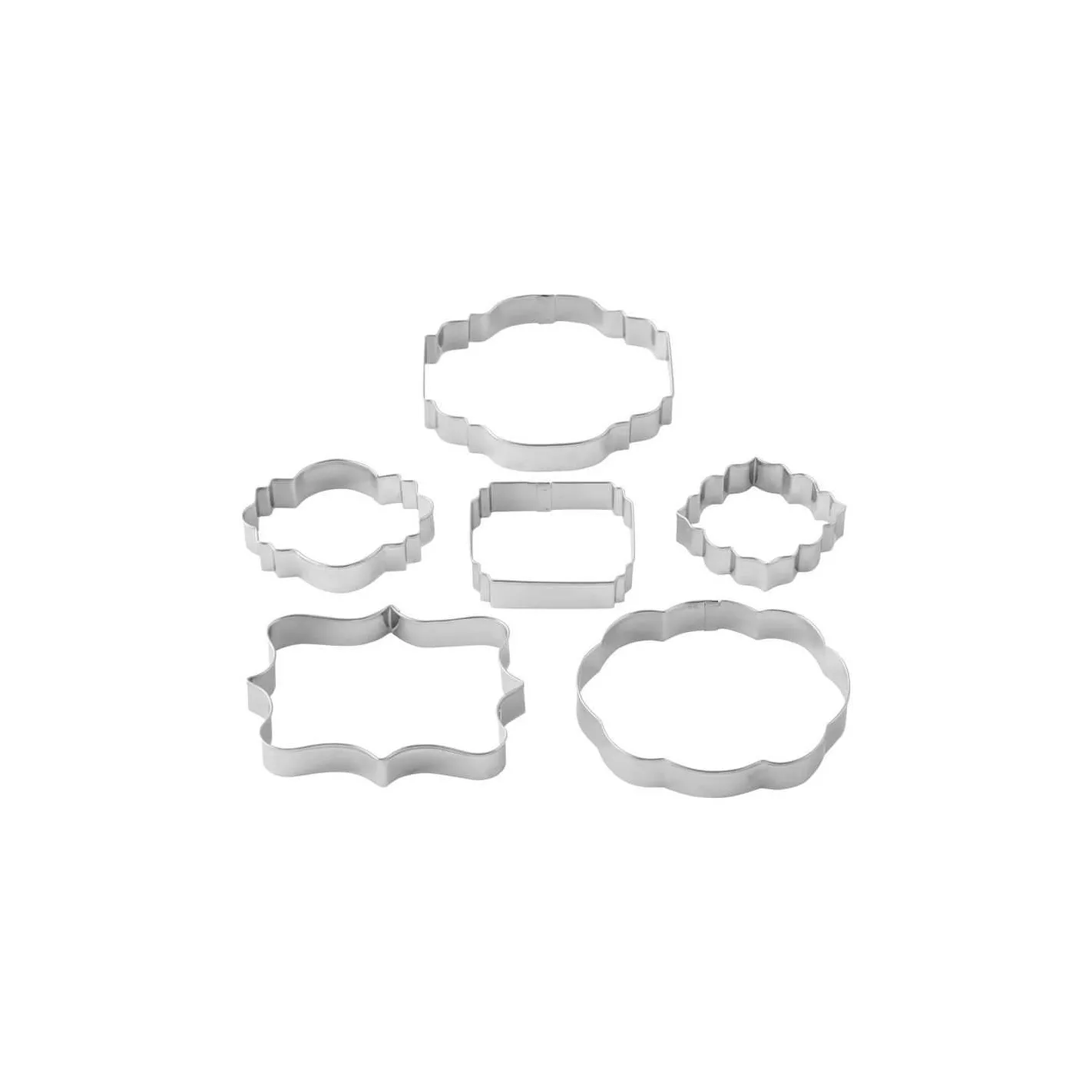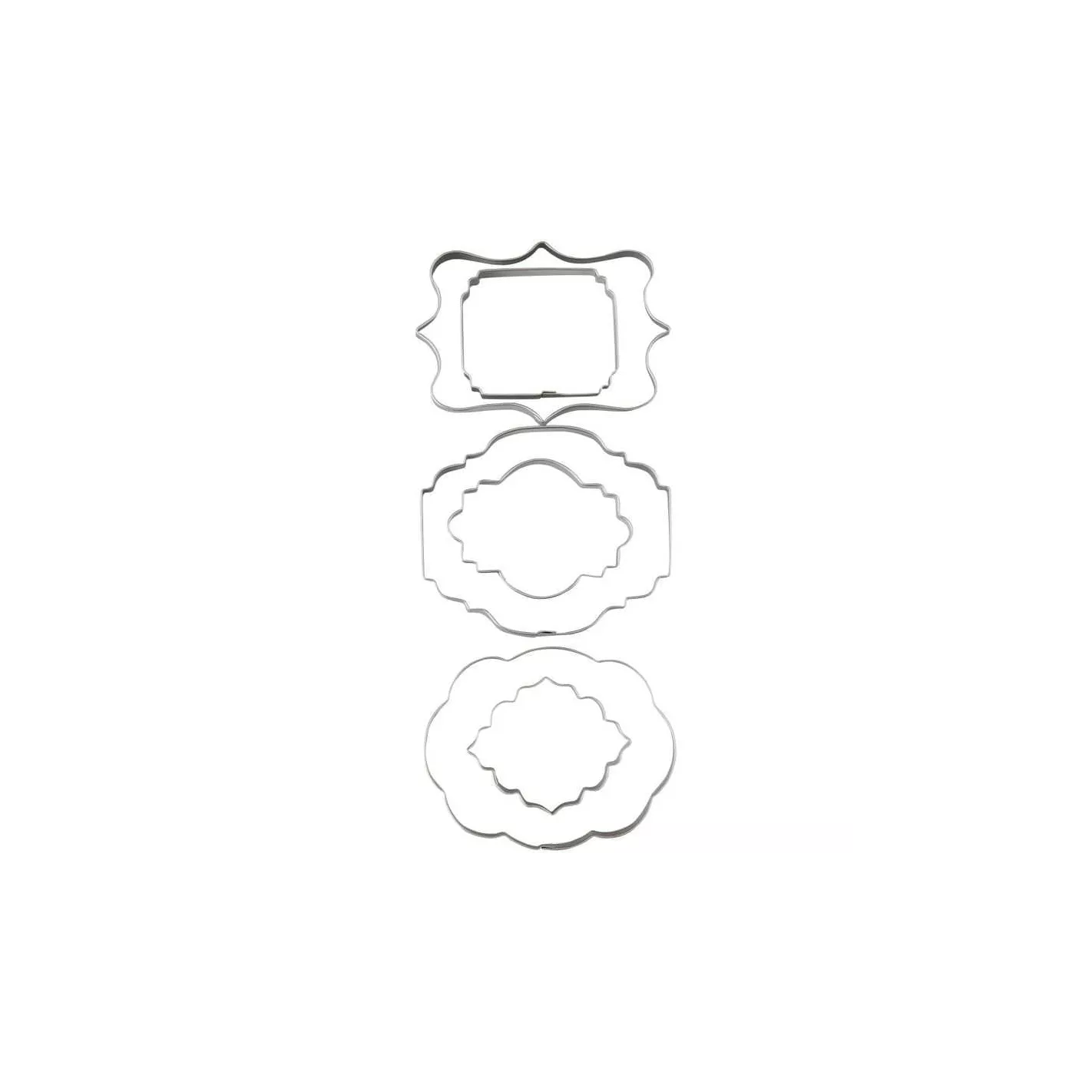 Cree fácilmente formas elegantes para monogramas y diseños en pasteles, galletas y piezas de fondant. Estos resistentes cortadores de placa de acero inoxidable tienen lados profundos para crear bordes nítidos. Ideal para monogramas y plantillas de nombres. Haga que los diseños de monogramas comestibles se destaquen con este conjunto de recortes de placa para enmarcarlos. Incluye 6 piezas.
