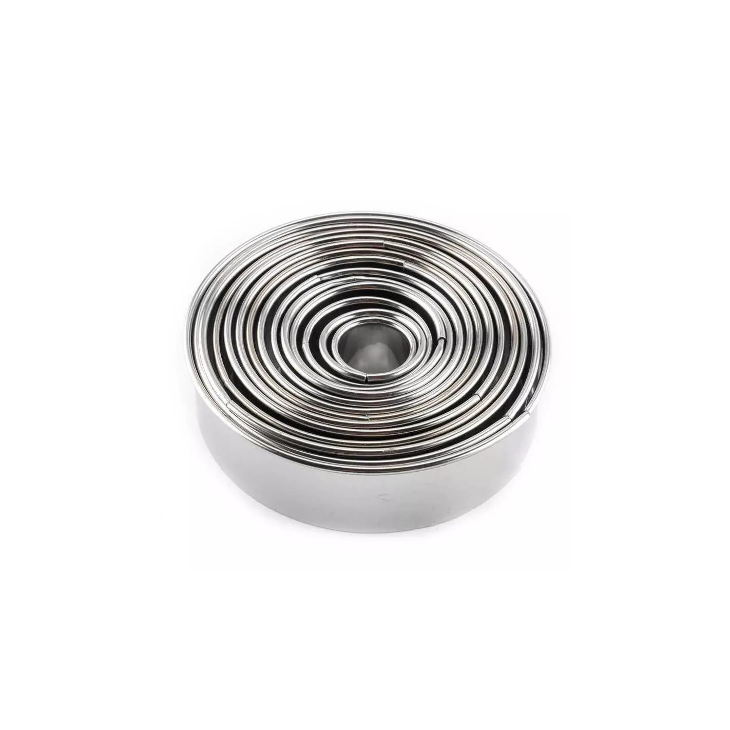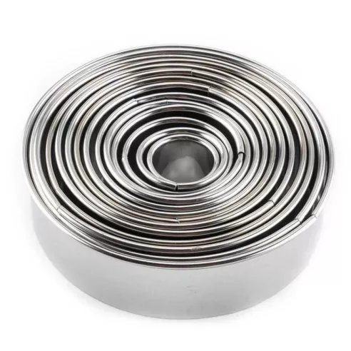 Estos cortadores de galletas de 12 piezas están hechos de acero inoxidable, sin BPA, incluso después de un uso prolongado, el acero inoxidable permanece libre de óxido. Puede crear galletas redondas de varios tamaños para diferentes situaciones, muy conveniente. Suministrado con una caja de almacenamiento, puede recoger los cortadores de galletas mucho después de su uso. Son ideales para creaciones culinarias de todo tipo, con un juego de cortadores de galletas puedes hacer tus galletas de bricolaje, galletas, mini pizzas, sándwiches, muffins ingleses, galletas de mantequilla, donas, pasteles, mini pasteles, bollos, pan, decoraciones de fondant y algunos productos de frutas y verduras.