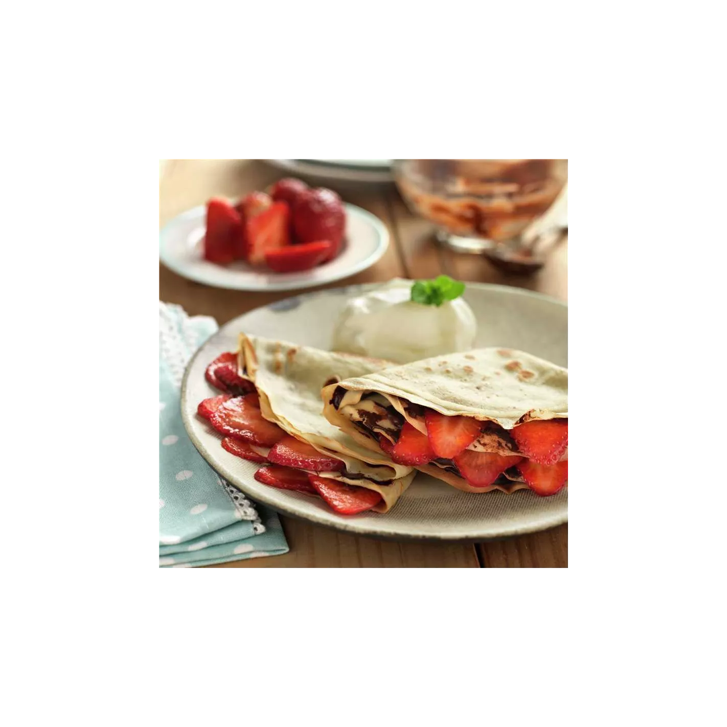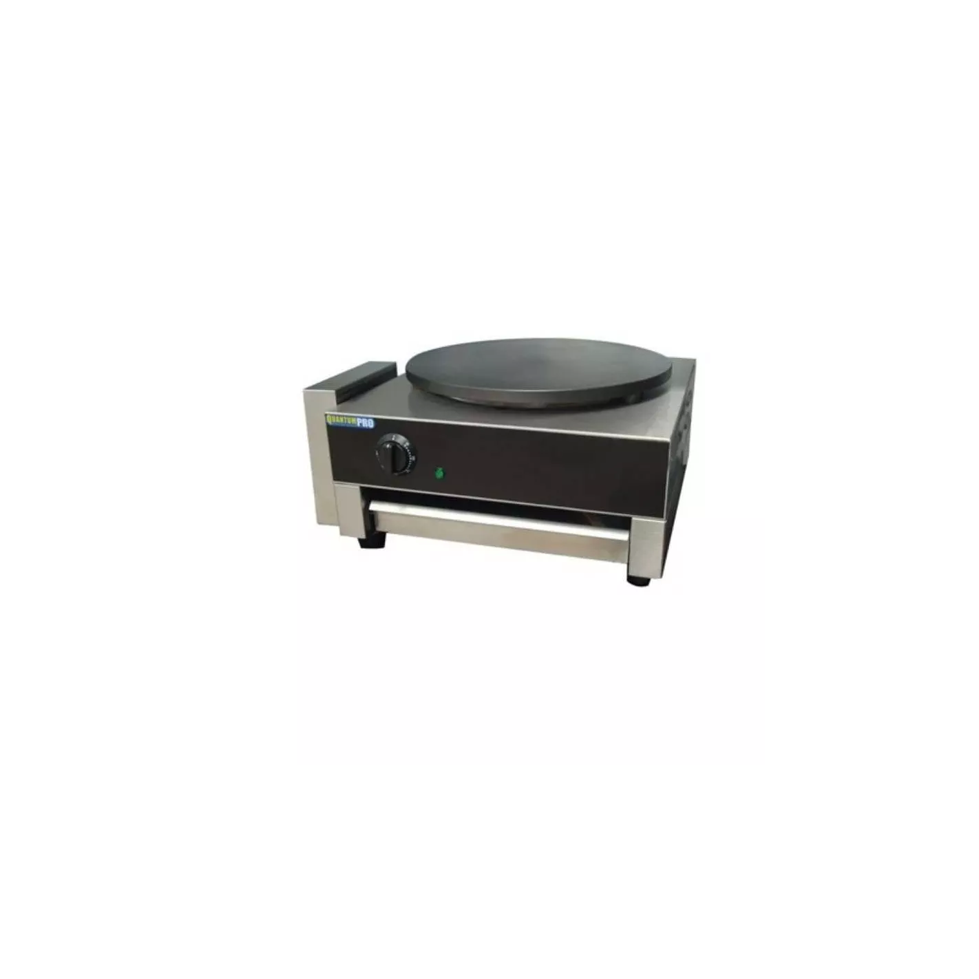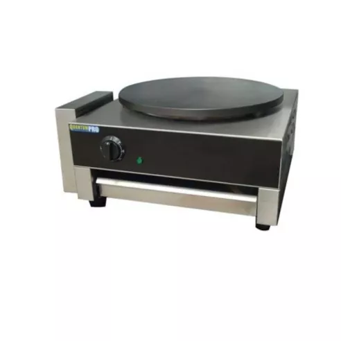 Esta plancha de crepas, es una manera fácil y eficiente de hacer deliciosos crepas. Cuenta con una placa de hierro fundido, cuerpo de acero inoxidable, dial de temperatura y luces indicadoras. Viene con esparcidor de masa de crepa.