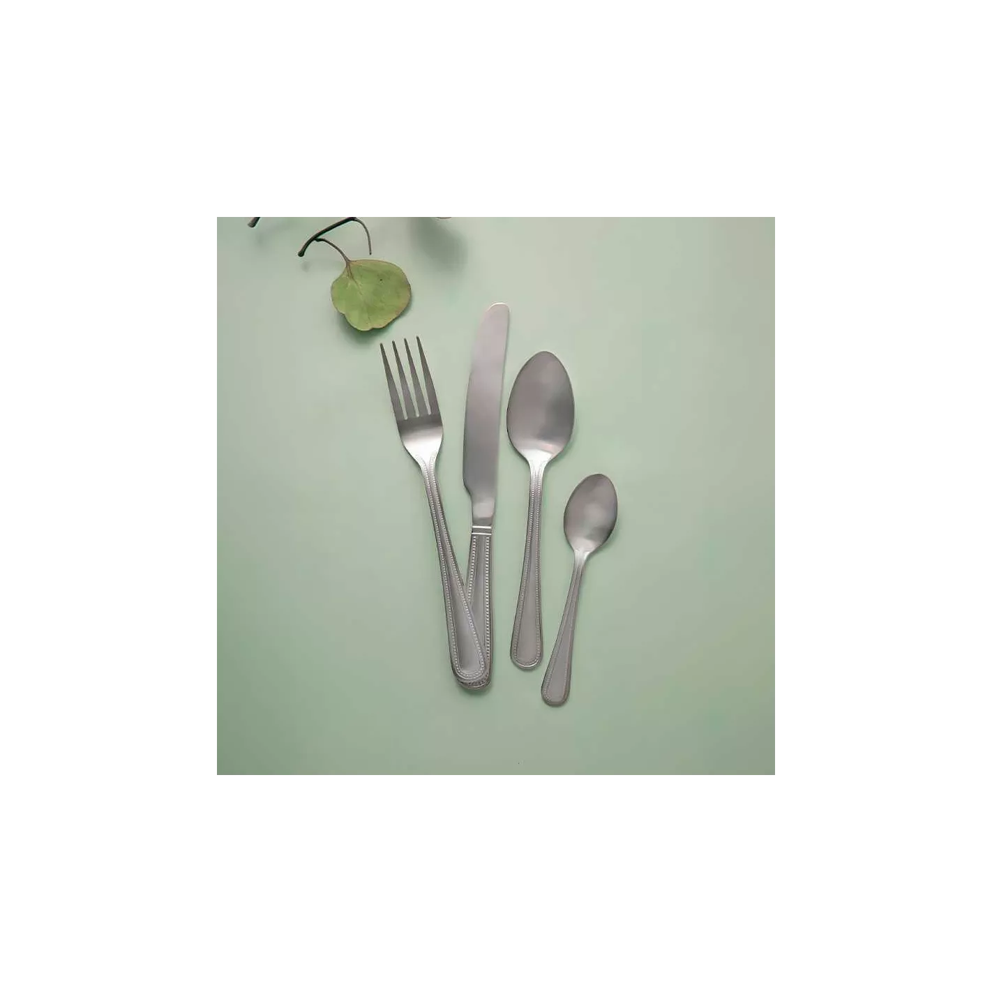Este juego de cubiertos es ideal para cuatro comensales; incluye cuchillos, tenedores, cucharas de postre y cucharillas de té. Con un enfoque en la artesanía experta, este juego de cubiertos de plata está hecho de acero inoxidable resistente a la oxidación.