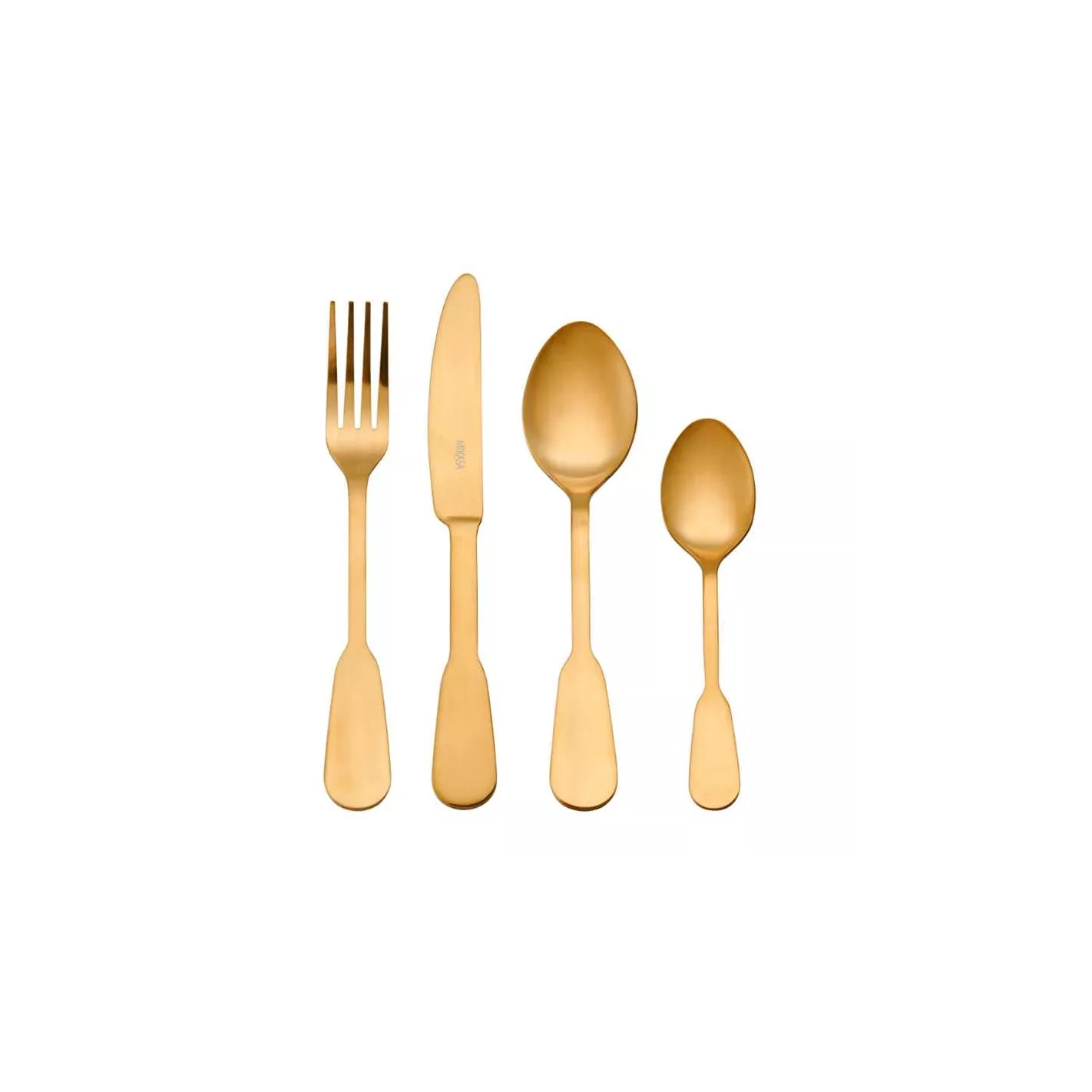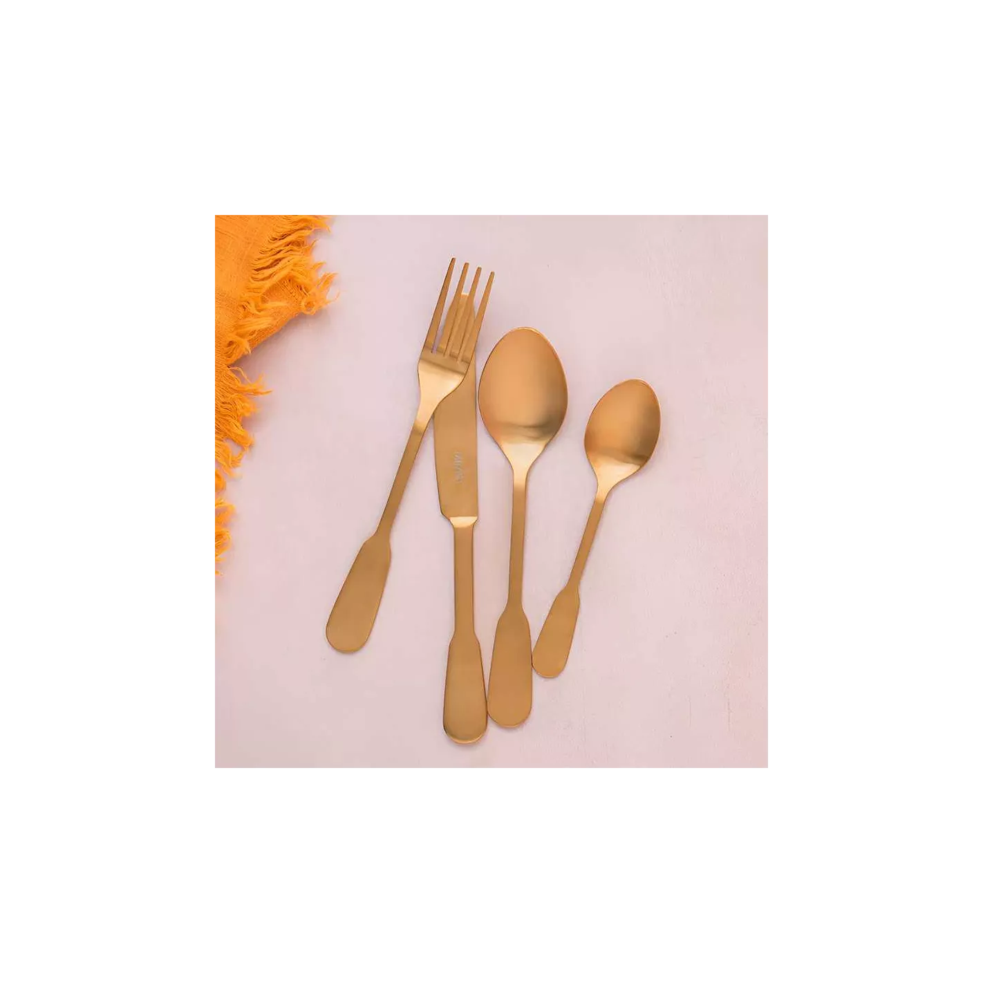 Este juego de cubiertos es ideal para cuatro comensales; incluye cuchillos, tenedores, cucharas de postre y cucharillas de té. Con un enfoque en la artesanía experta, este juego de cubiertos de plata está hecho de acero inoxidable resistente a la oxidación.