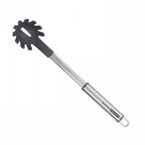 Sirva con mayor facilidad con la cuchara de pasta de acero inoxidable de la casa Tescoma, la misma cuenta con una medidad de 34.5 centímetros y gracias a su fabricación es mas fácil de lavar gracias a su antiadherencia.