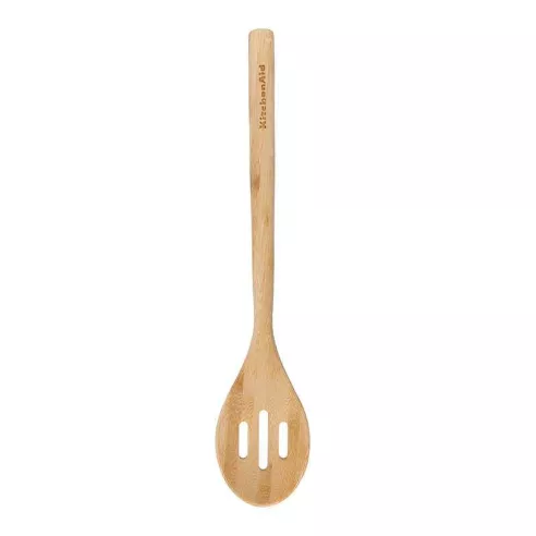 Esta cuchara ranurada de bambú de KitchenAid, fabricada con bambú ecológico, es perfecta para revolver guisos, salsas y sopas. La cabeza ranurada también permite que el exceso de líquido se escurra.