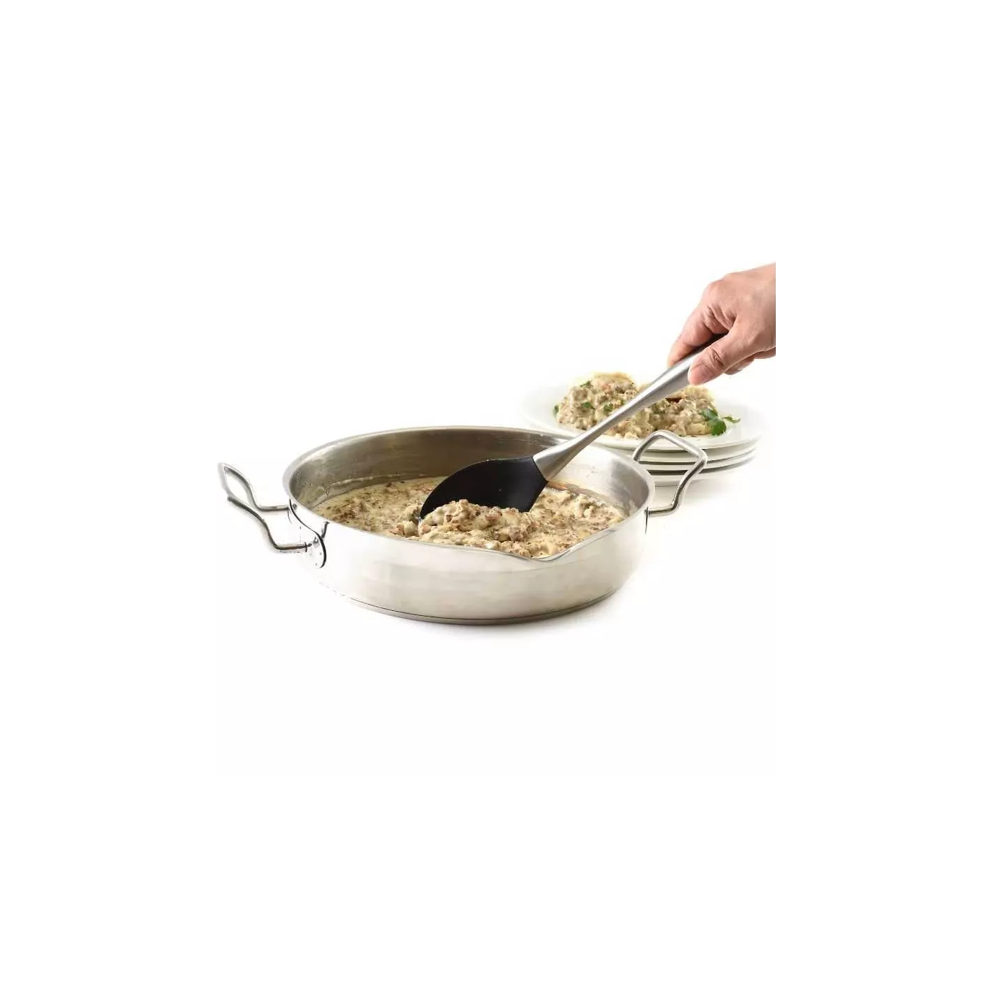 ¡Un elemento esencial para cocinar todos los días! revuelva los lotes de alimentos a fuego lento, revuelva y doble los ingredientes en tazones, mezcle, saque y empuje la masa hacia las esquinas todo con esta cuchara de silicón.