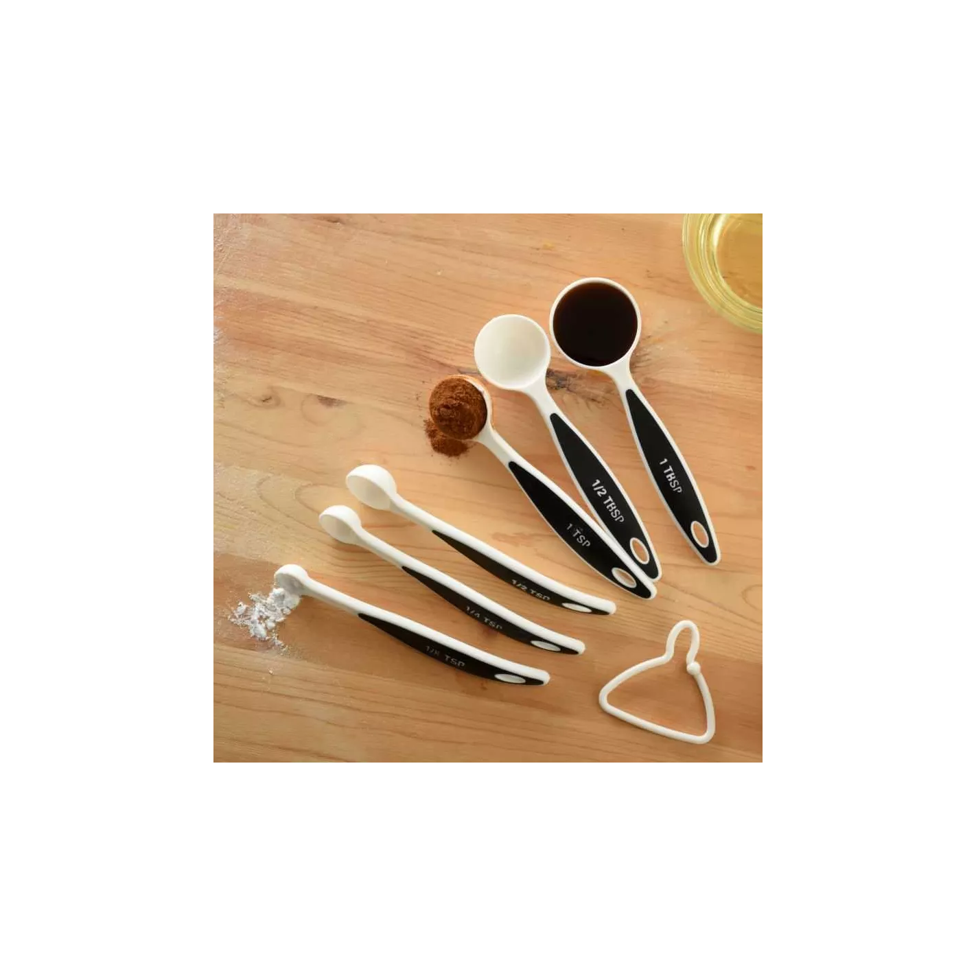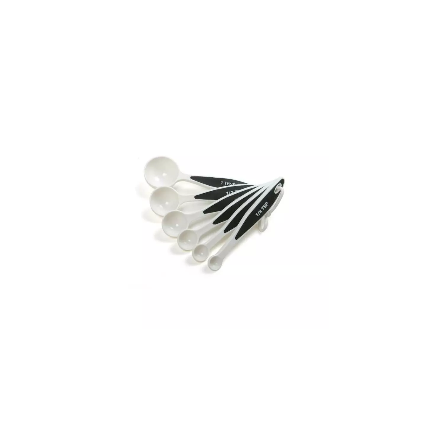 Tus pasteles siempre quedarán geniales con la ayuda de estas clásicas cucharas medidoras! Mida con precisión sus especias, azúcares, polvos para hornear y más. Con una forma elegante y redonda, puedes acceder fácilmente a cualquier recipiente. Los bordes nivelados permiten una medición precisa. Cuenta con agarres fuertes y cómodos para un fácil uso con la mano derecha e izquierda. Incluye 6 cucharas resistentes, que miden desde 1/8 de cucharadita hasta 1 cucharada.