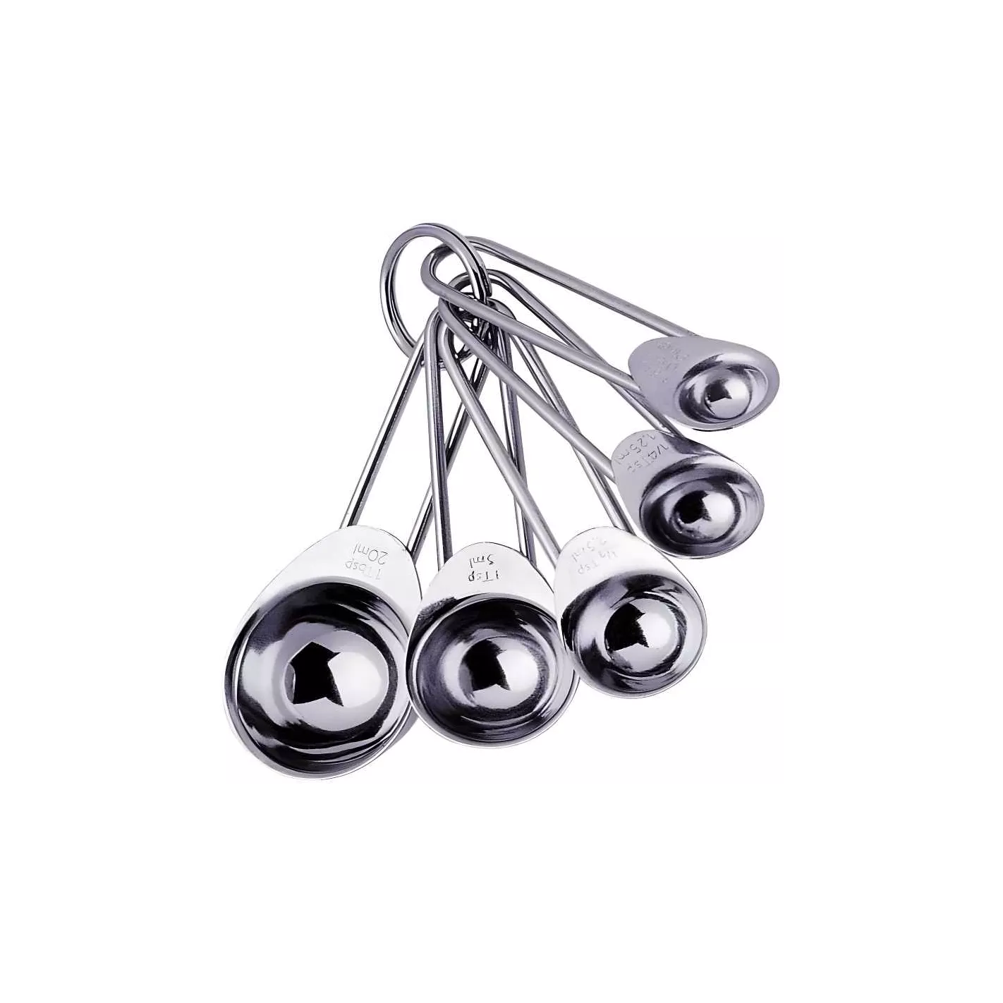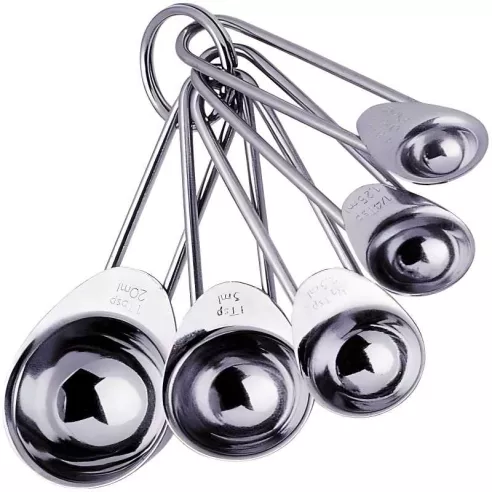 El diseño único de estas cucharas dosificadoras las convierte en un complemento divertido para cualquier cocina. El juego incluye 5 cucharas con medidas estándar y métricas claramente impresas. Cuando no está en uso, el conjunto se anida junto con el anillo de almacenamiento incluido.