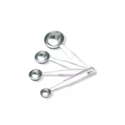 El juego de cucharas medidoras pesadas cumple con los estándares para su cocina. Y es necesario tener en cualquier cocina o panadería. Es seguro lavar en el lavavajillas. El juego de cucharas medidoras pesadas está hecho de acero inoxidable y cuenta con un anillo conector para mayor comodidad de almacenamiento.