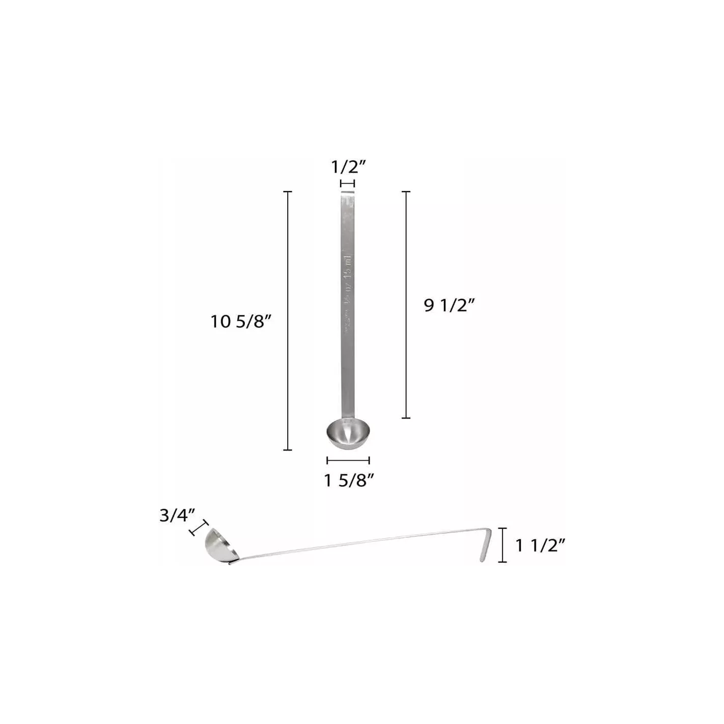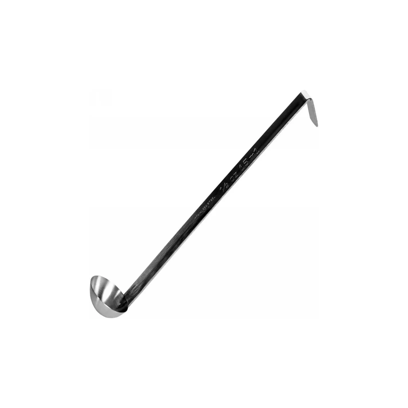 Use la cuchara de dos piezas de acero inoxidable de 1/2 onza para servir porciones uniformes de aderezo para ensaladas u otros ingredientes. Con un mango cómodo, este cucharón proporciona un agarre equilibrado y controlado, mientras que su gancho para colgar le permite descansar en el costado de la olla cuando no está en uso. Gracias a su construcción de acero inoxidable, este cucharón con acabado en espejo es resistente a la corrosión y resistirá el uso intensivo.