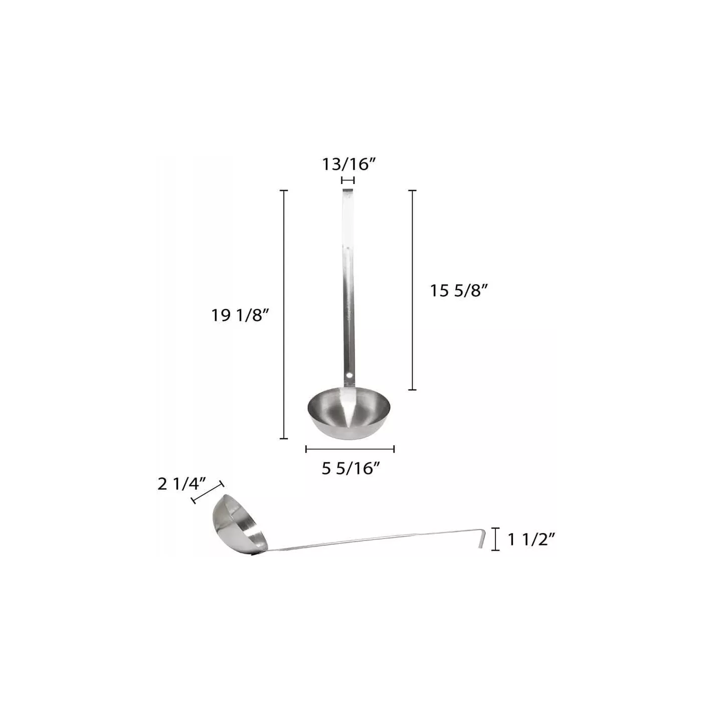 Ya sea que esté sirviendo sopa, estofado o chile, la cuchara de dos piezas de acero inoxidable de 16 onzas ayudará a hacer el trabajo. Diseñado con un tazón de control de porciones, este cucharón facilita el vertido exacto y sin desorden, mientras que su mango largo proporciona un agarre cómodo al alcanzar las ollas profundas. Este cucharón resistente a la corrosión resistirá altas temperaturas sin perder su forma. Para mayor comodidad, tiene un gancho para colgar, por lo que se asienta fácilmente en el borde de una olla cuando no se usa.