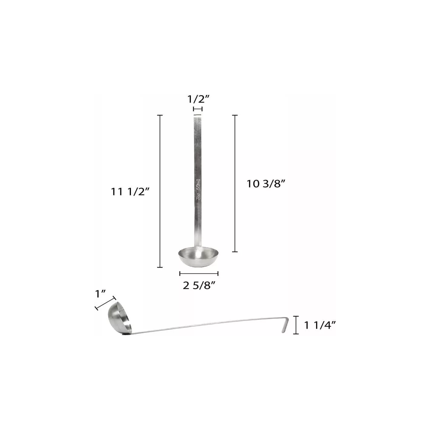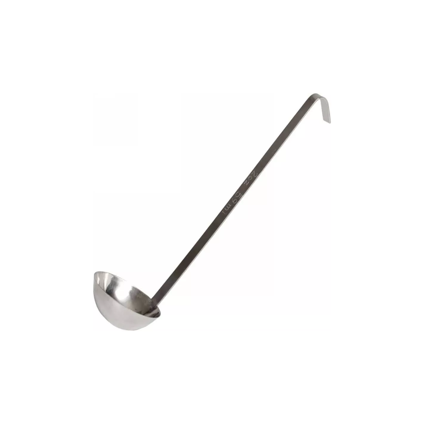 Utilizado principalmente para servir aderezos para ensaladas o salsas, el cucharón de dos piezas de acero inoxidable de 2 onzas también es ideal para rociar chocolate derretido o rellenar moldes para magdalenas con masa. Diseñado con un tazón de control de porciones, este cucharón garantiza un servicio constante, mientras que su mango largo mantiene las manos alejadas de las ollas y botes. Gracias a su construcción de acero inoxidable de dos piezas, este cucharón resistente a la corrosión resistirá un servicio de gran volumen.