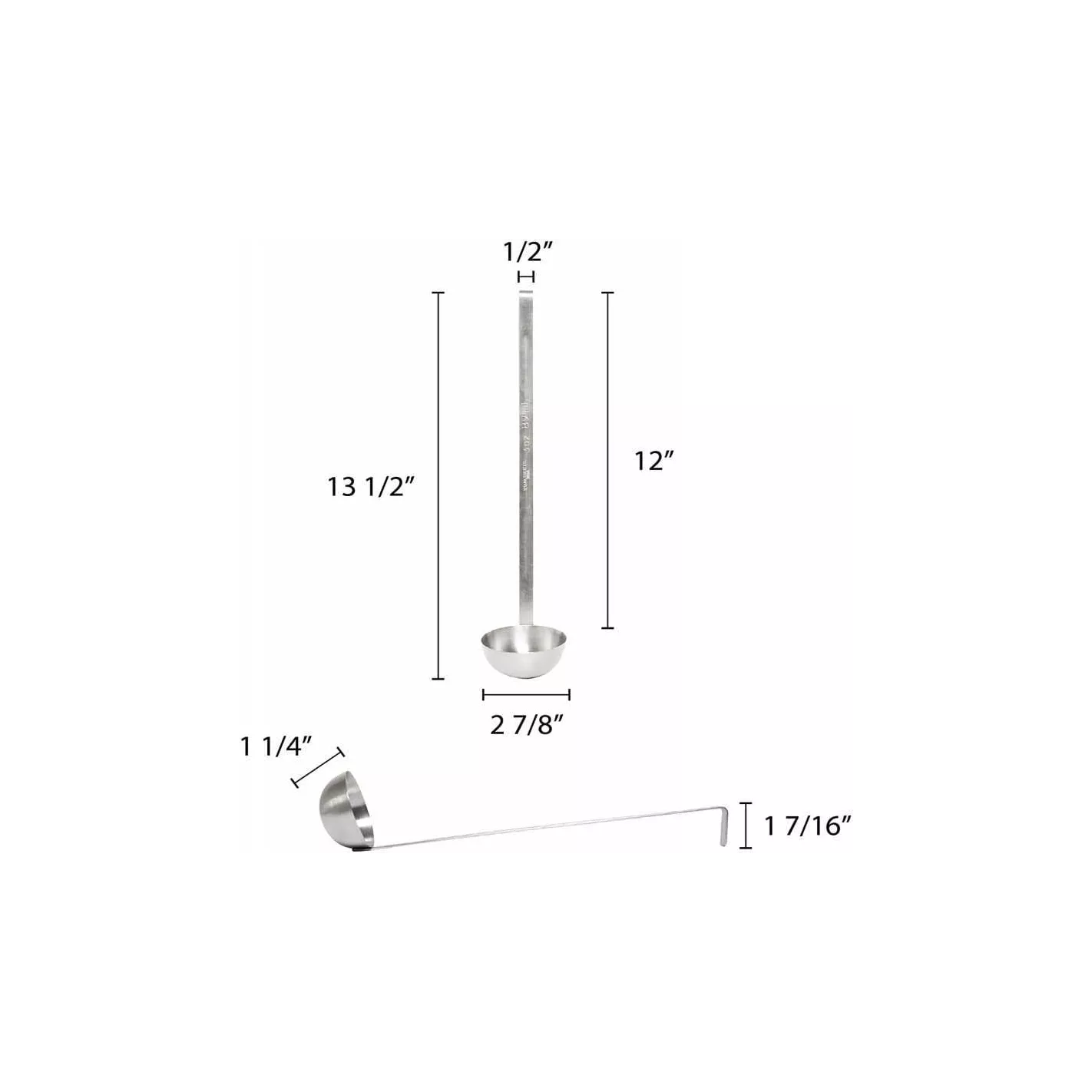 Perfecto para servir sopas, salsas o aderezos para ensaladas, la cuchara de dos piezas de acero inoxidable de 3 onzas es un elemento básico en cualquier evento con cocina o cocina comercial. Diseñado con un recipiente suavemente curvado, este cucharón facilita la máxima retención de líquidos, mientras que su construcción de acero inoxidable resistente a la oxidación es altamente duradera. Gracias a su mango largo, este cucharón de dos piezas garantiza un servicio sin contacto y su gancho para colgar permite un almacenamiento conveniente.