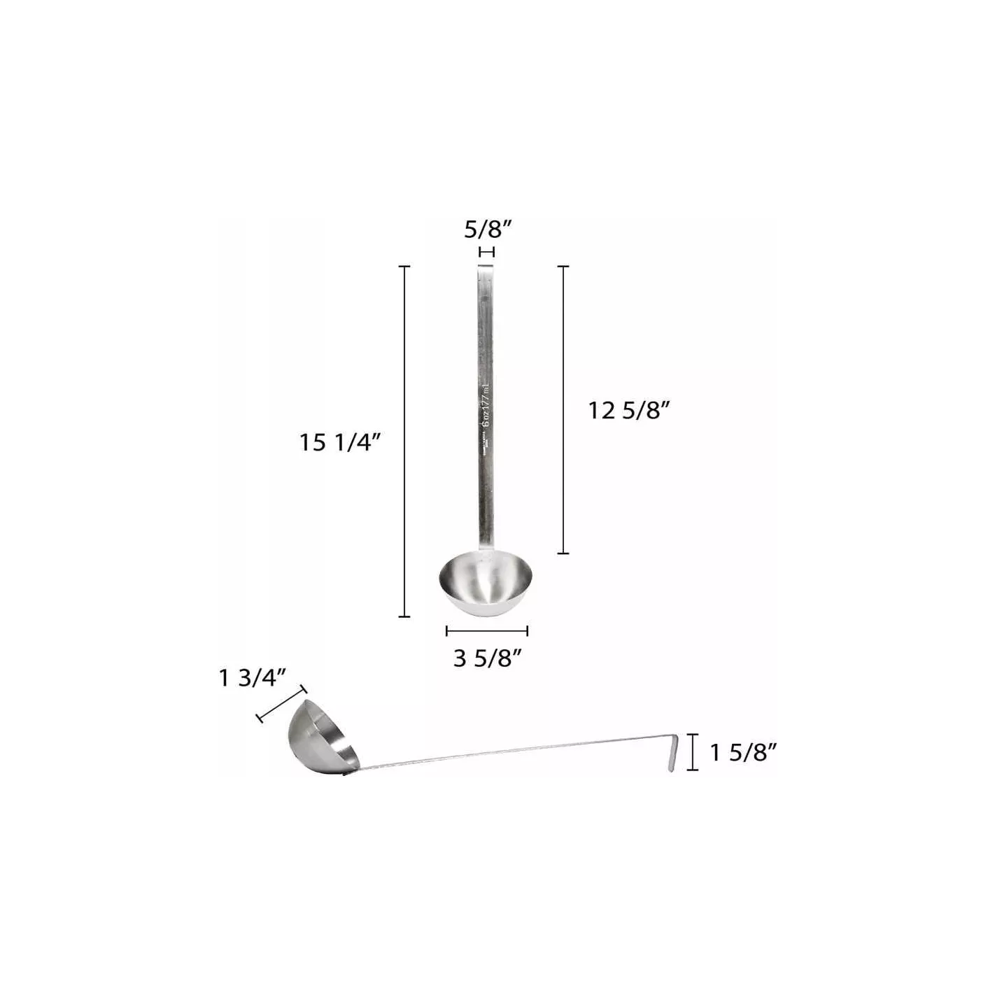Un elemento básico en cualquier cocina comercial o evento abastecido, el Cucharón de dos piezas de acero inoxidable de 6 onzas es el utensilio perfecto para servir salsa o aderezo. Este cucharón tiene un tazón de fondo redondo para servir sin desorden, y un mango largo para mantener las manos alejadas de las ollas y recipientes. Hecho a mano de acero inoxidable resistente a la oxidación, es lo suficientemente fuerte como para soportar un uso intensivo sin perder su forma.