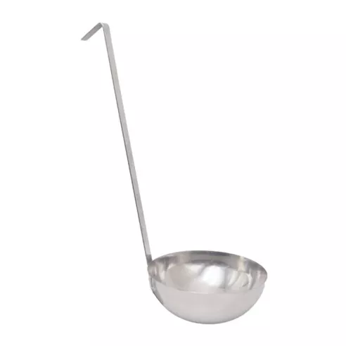 Diseñado con un tazón de control de porciones de tamaño generoso, este cucharón sirve porciones uniformes, mientras que su mango largo le permite llegar a ollas profundas. Para una durabilidad sobresaliente, esta cuchara está hecha de acero inoxidable resistente a la corrosión que resistirá los rigores de una cocina ocupada. Gracias a su gancho para colgar, este cucharón se coloca fácilmente al costado de una olla y se puede colgar en un riel cuando no está en uso.