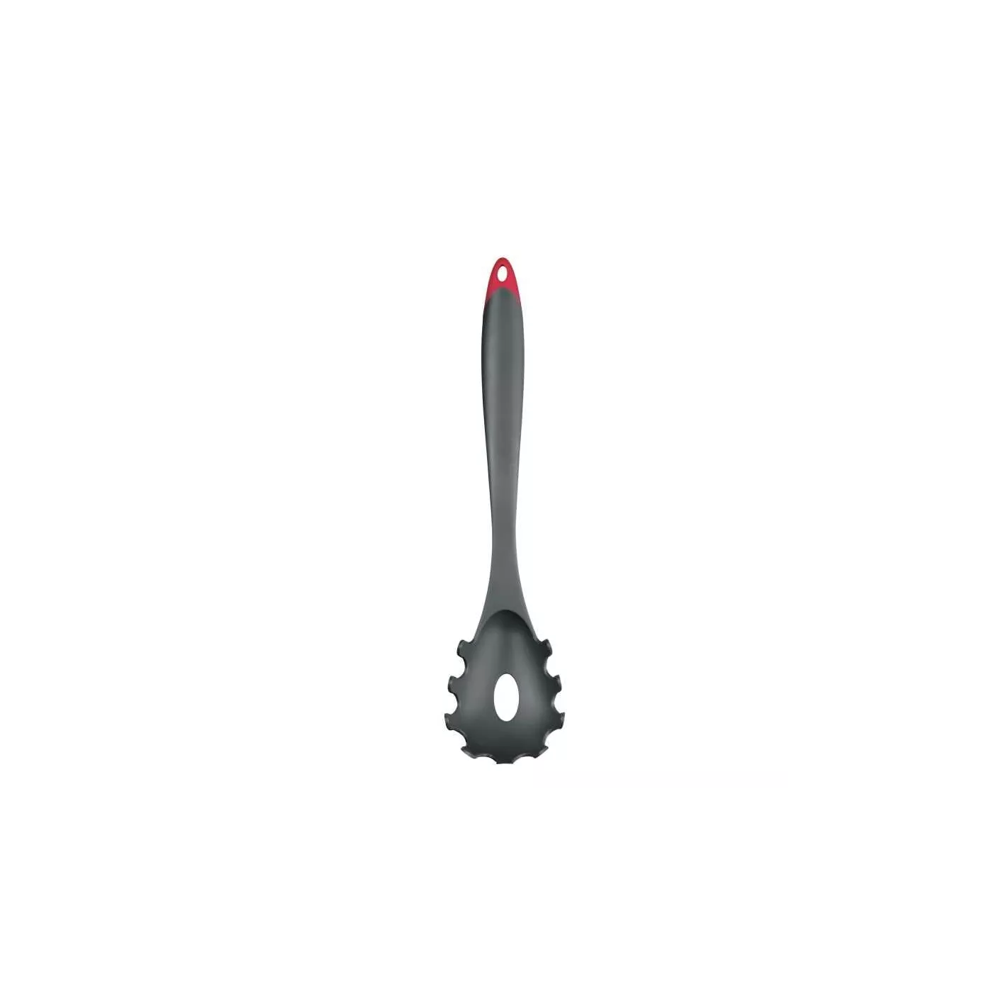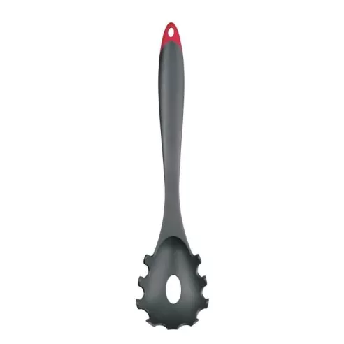 Adecuado para su uso con utensilios de cocina antiadherente. Con la adición de fibra de vidrio, esta cuchara espagueti es más fuerte y más resistente al calor que las herramientas de nylon tradicionales. El agujero de drenaje y bordes redondeados adecuados para todas las formas y tamaños de pasta.