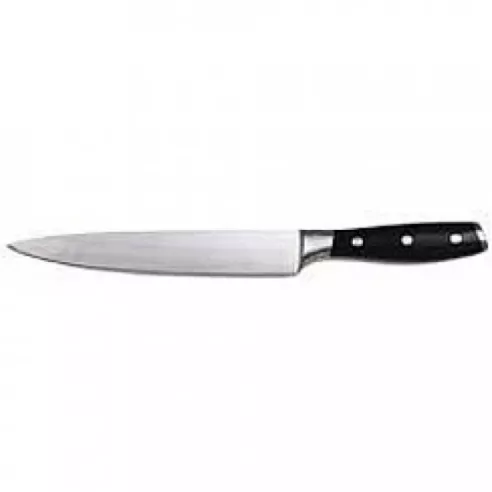El cuchillo hace un trabajo corto de tallar asados, aves de corral y pescado en rebanadas limpias e incluso de un solo golpe continuo. Cuenta con acero inoxidable molibdeno vanadio con pulido cónico y cuchillas de acabado en piedra. Espiga completa, refuerzos dobles para un excelente equilibrio. Cómodas asas sintéticas aseguradas con tres remaches