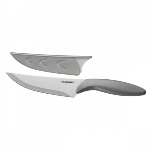 Cuchillo de cocina con hoja de acero inoxidable en funda protectora para llevar y guardar el cuchillo de forma segura. Fabricado en acero inoxidable de alta calidad, mango y funda de plástico resistente. Aptas para el lavavajillas.MATERIAL: ACERO INOXIDABLE