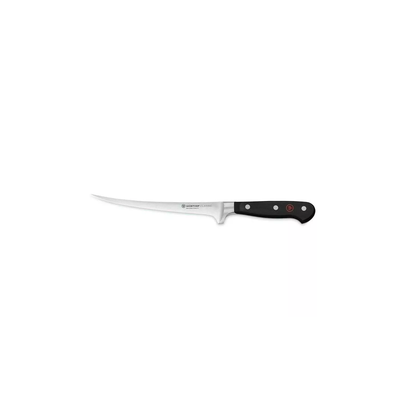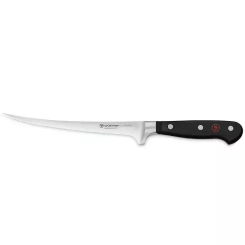 El cuchillo de filete wusthof tiene una cuchilla afilada y estrecha que es perfecta para filetear peces delicados. La cuchilla estrecha se mueve fácilmente alrededor de los huesos.