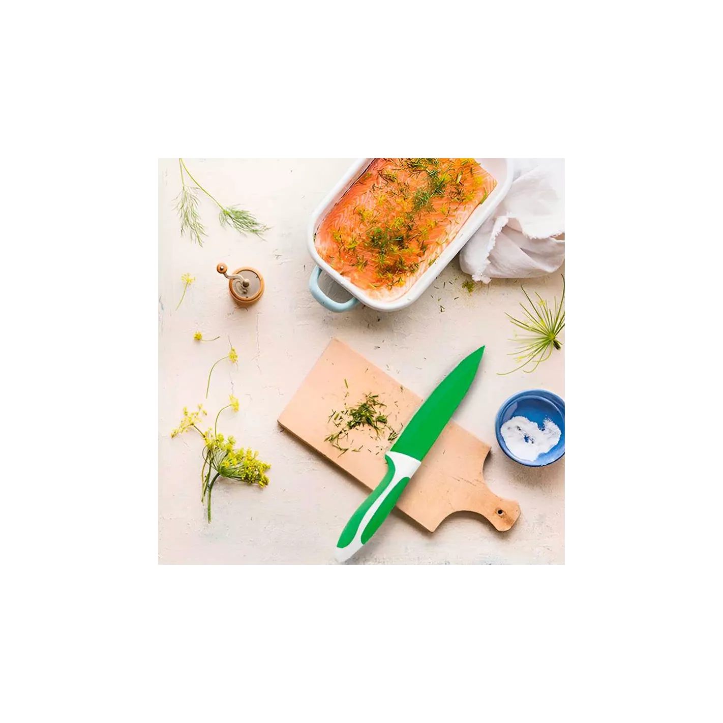 Este cuchillo de cocina es ideal para pelar y cortar frutas y verduras. Para un corte antiadherente y preciso gracias al revestimiento antiadherente. El cuchillo tiene una cuchilla afilada de acero inoxidable y el mango ergonómico suave al tacto garantizan un corte seguro y antideslizante.