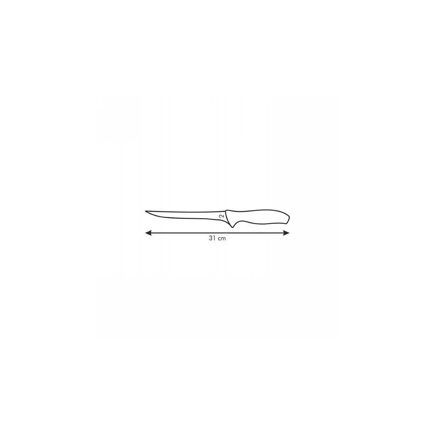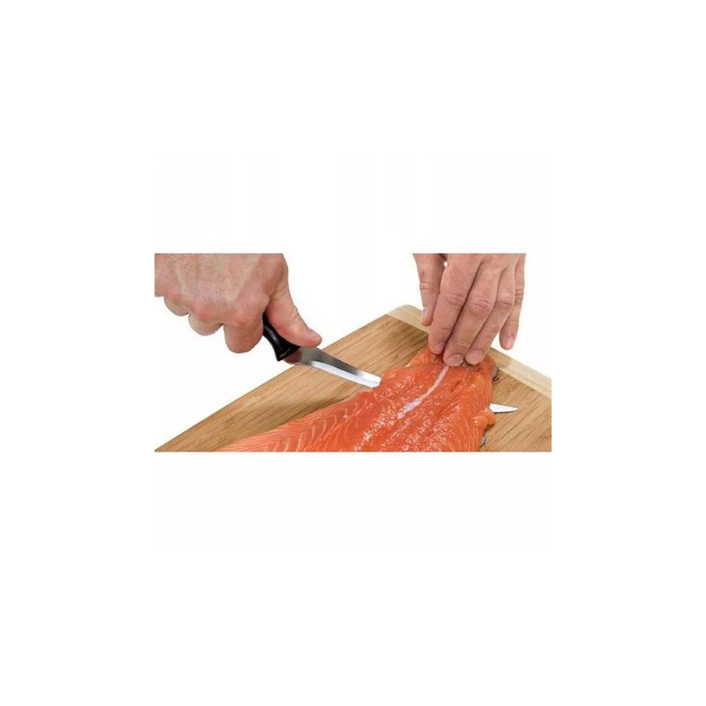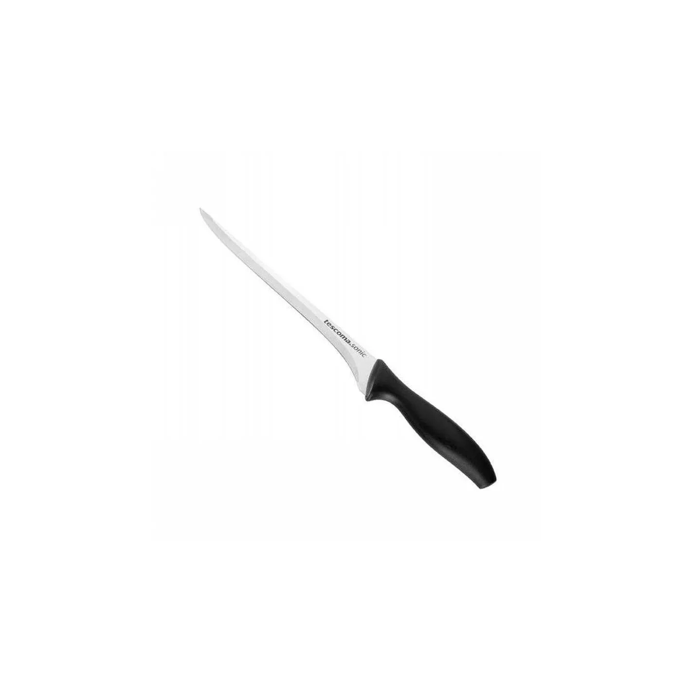 Cuchillo para filetear con mango ergonómico en resistente plástico negro. Perfecto para filetear pescado gracias a su hoja fina y flexible. Longitud de la hoja: 18 centímetros.