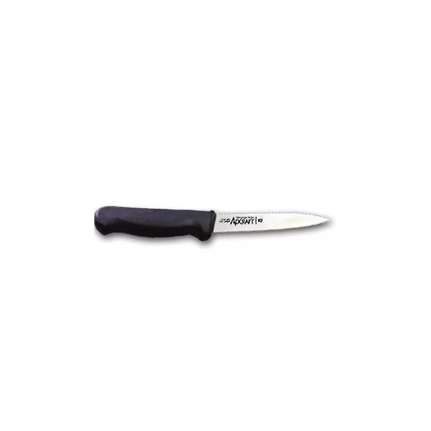 Cuchillo ideal para pelar vegetales y frutas. Medida: 4 pulgadas. Borde recto. Libre de manchas. Aptas para el lavavajillas. Mango de polipropileno.Acero de alto carbono. Mango negro. Certificado NSF.