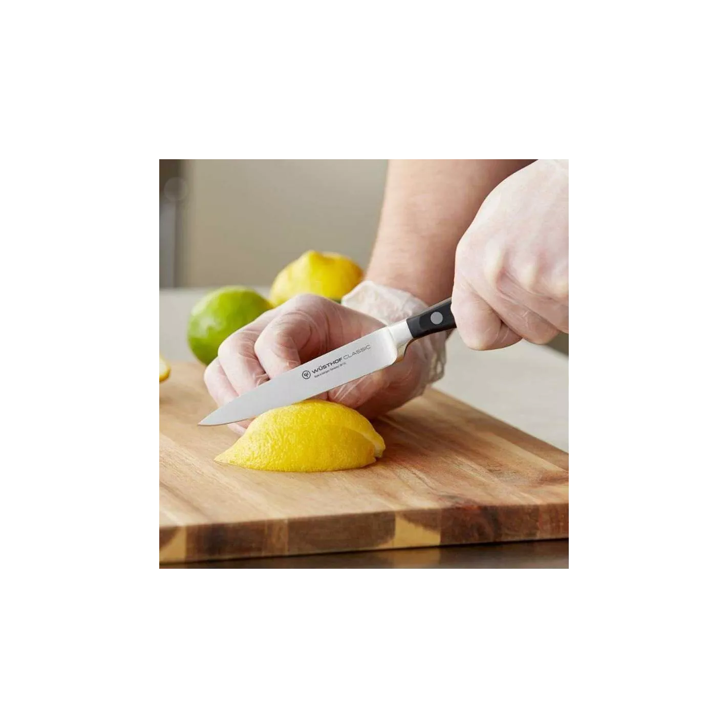 Cuchillo de utilidad forjado de precisión, diseñado para picar cebollas, hierbas, así como cortar verduras y frutas.