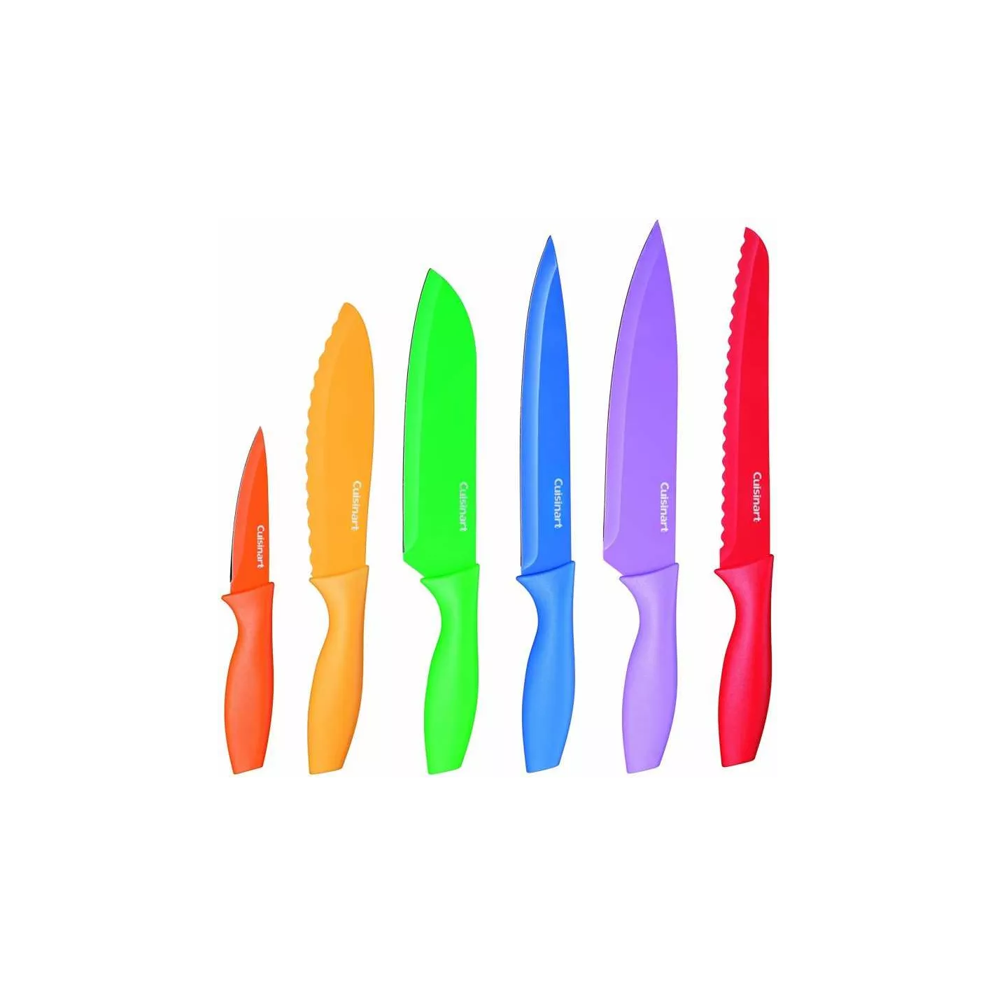 Los cuchillos de acero inoxidable de calidad profesional Cuisinart Advantage tienen un recubrimiento antiadherente de última generación que facilita el corte y permite la codificación durante la preparación de alimentos para evitar la contaminación cruzada. En tonos de estilo para el consumidor de diseño inteligente actual, estos cuchillos premium vienen con protectores de cuchillas a juego y mangos ergonómicos