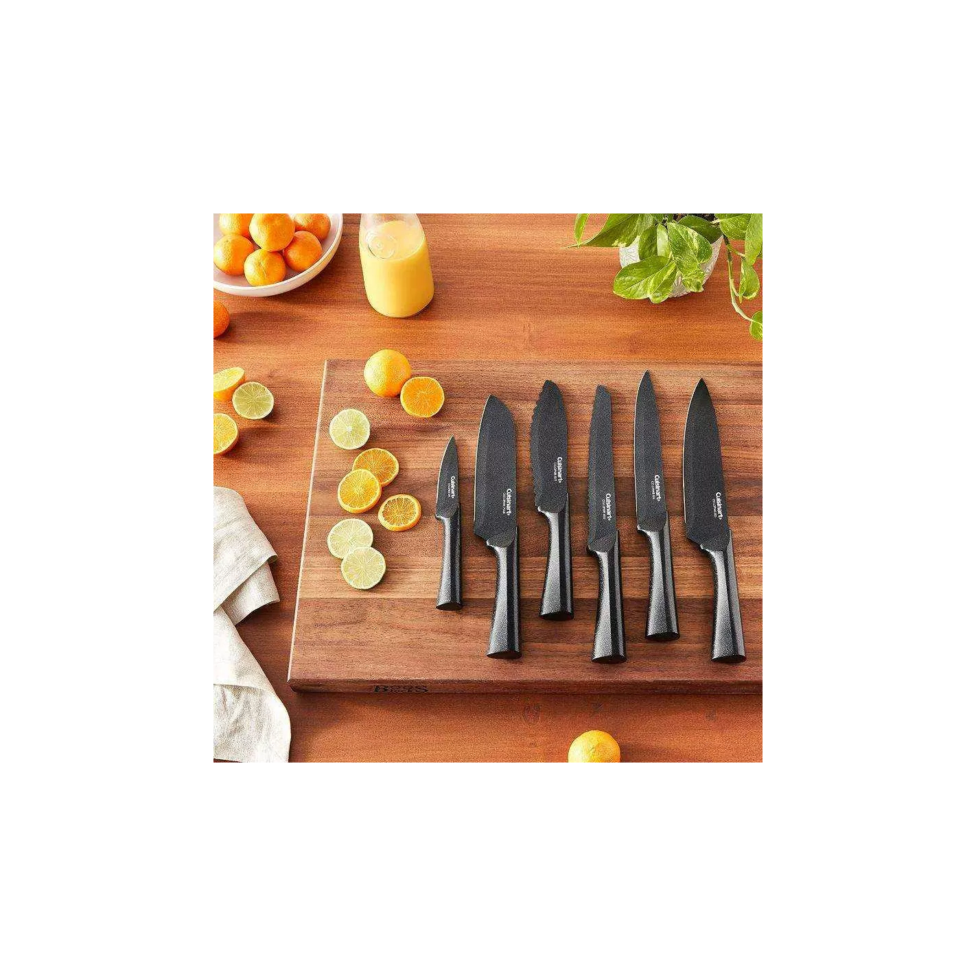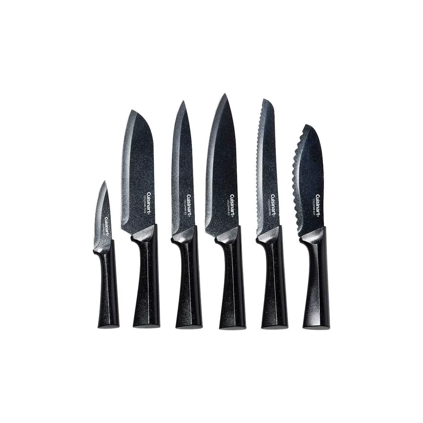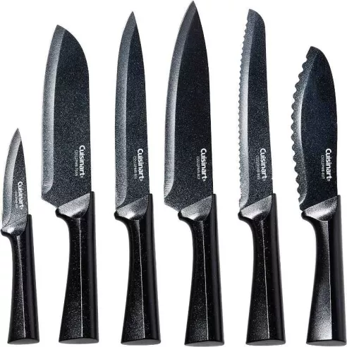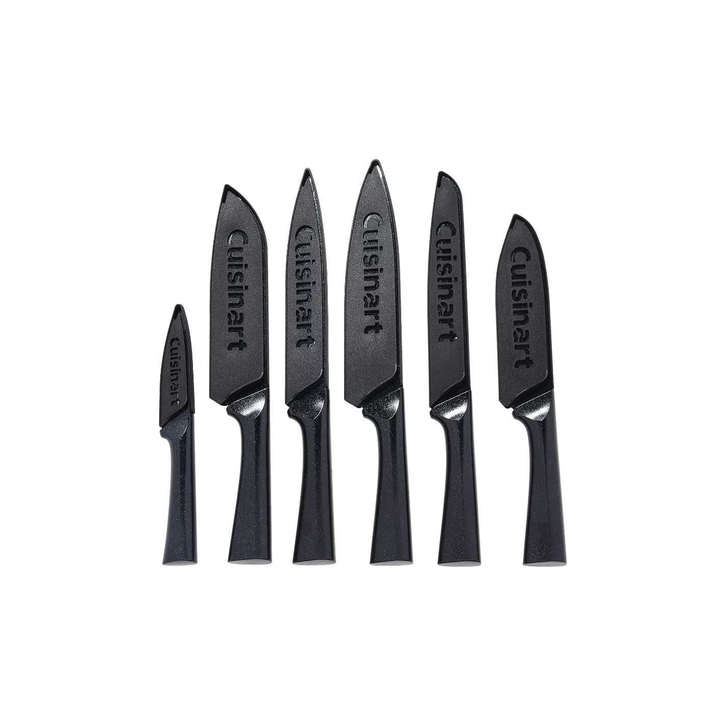 Los cuchillos de acero inoxidable de calidad profesional tienen un revestimiento antiadherente de vanguardia que facilita el corte y permite la codificación de colores durante la preparación de alimentos para evitar la contaminación cruzada. En tonos de estilo para el consumidor de diseño inteligente de hoy, estos cuchillos premium vienen con protectores de hoja y mangos ergonómicos a juego.
