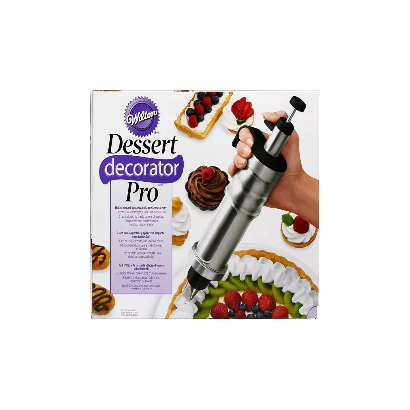 Una vez que tenga esta herramienta en la mano, querrá decorarla todos los días. Úselo para decorar pasteles, galletas, pasteles, dulces o incluso aperitivos como huevos rellenos. El cilindro de acero inoxidable tiene un diseño ergonómico que facilita su sujeción, mientras que el cilindro giratorio coloca la punta en la posición de decoración perfecta. El émbolo extrae y empuja el hielo o el relleno a través del cilindro suavemente y tiene una palanca de pulgar conveniente para una decoración cómoda con una sola mano. Viene con un folleto de recetas e instrucciones, 6 consejos de decoración, 2 acopladores y se adapta a la mayoría de los consejos estándar de WiltonCOLOR: PLATEADO