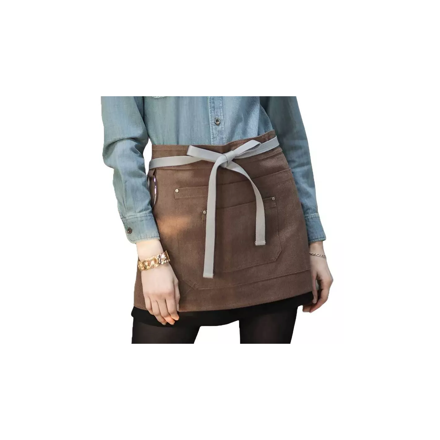Delantal Corto de Color Cafe CHECKEDOUT CU378S134022U4