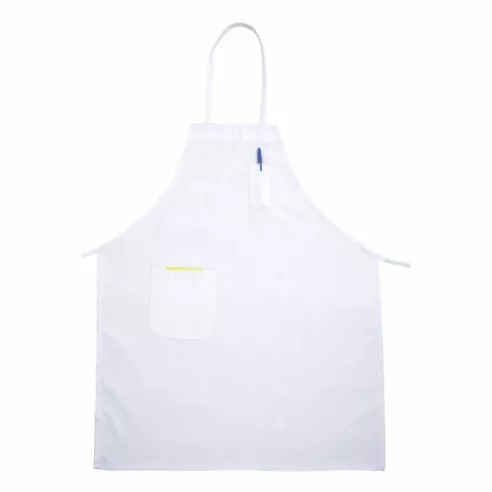Un delantal para todo uso en la cocina, presentación en color blanco y viene con un bolsillo en la parte derecha para poder guardar varios objetos. La bolsa es bastante amplia y es fácil de lavar.