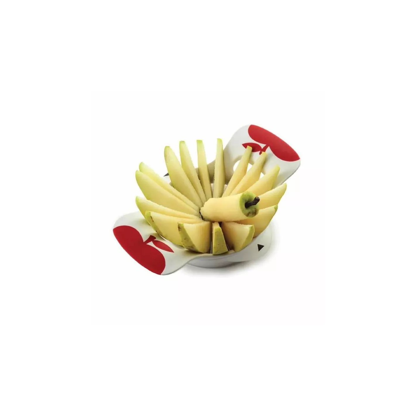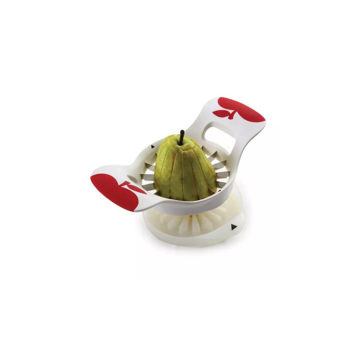 Esta cortadora o descortezadora de frutas es una herramienta perfecta para cortar manzanas o peras en 16 rodajas y quitar el núcleo al mismo tiempo.