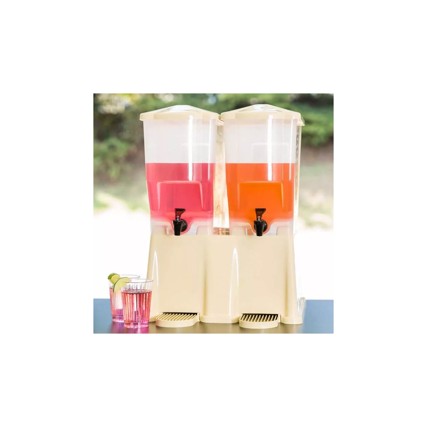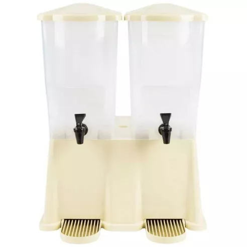 El dispensador de bebidas tiene dos depósitos separados de 3 galones, que permiten a los usuarios servir dos bebidas simultáneamente. Con un espacio libre para el grifo de 8 1/4 pulgadas, los clientes pueden llenar vasos grandes en la estación. Hecha de polietileno, la unidad tiene depósitos transparentes para que los empleados sepan cuándo deben rellenarse.