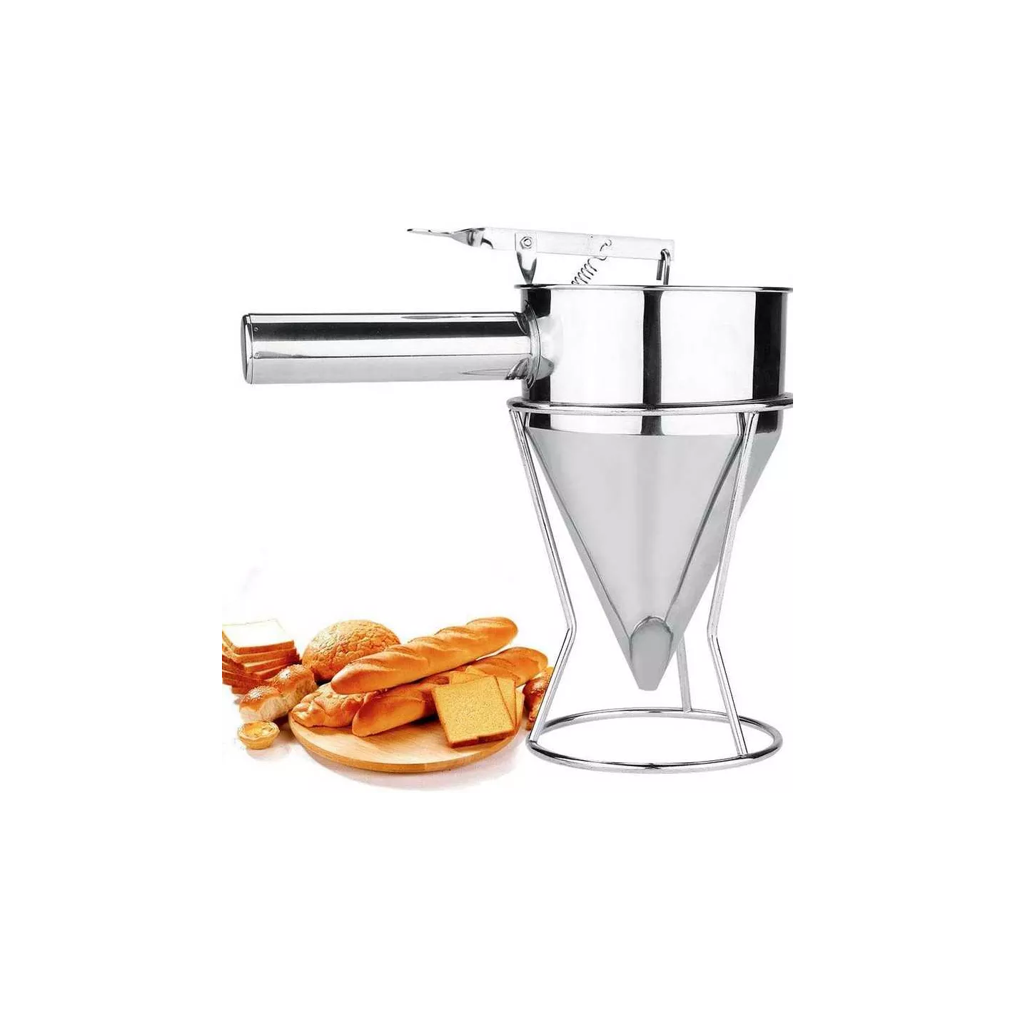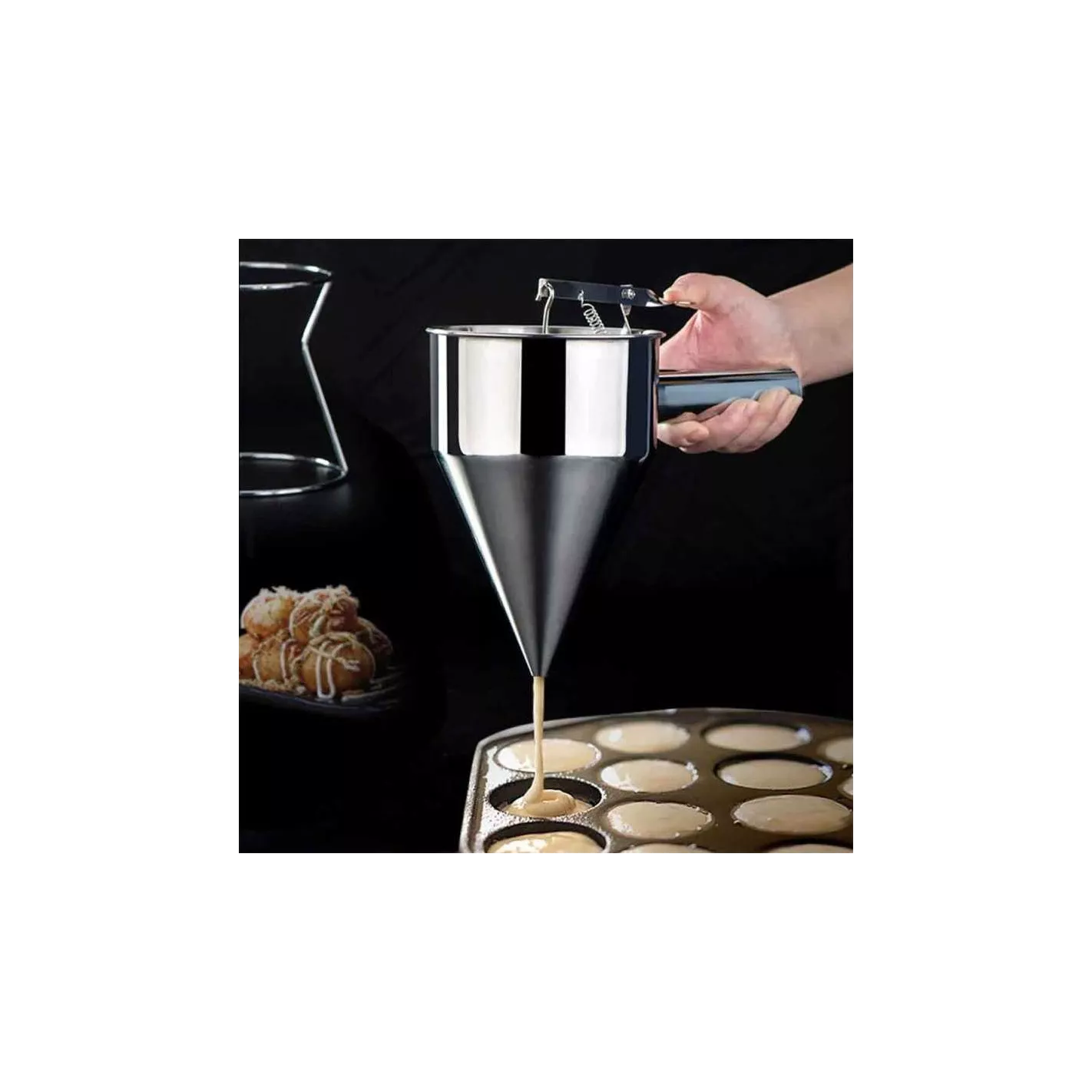 Este embudo de cocina está hecha de acero inoxidable última intervensión de óxido y es una gran adición a sus utensilios de cocina. Excelente adición a sus utensilios de tarta. Fácilmente y con precisión dispensa la mayoría de mezclas, salsas, y cobertura, incluso salsa para pizza. Ideal para uso con tortitas, crepes, gofres, galletas, y mucho más. Perfecto para todas sus necesidades de cocina. Sin desperdicio y sin ensuciar. Fácil de limpiar y apto para lavaplatos. También puede ser una gran herramienta para tus utensilios de comercial
