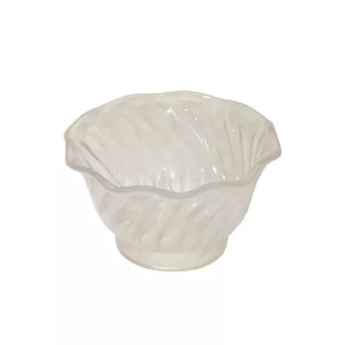 Utilice la dulcera  para servir helados y otros postres. Con un borde curvo y bellamente acentuado con líneas en forma de remolino a los lados, este plato de postre agrega un toque elegante pero clásico a cualquier mesa. Gracias a su construcción de plástico duradero, esta dulcera de postre resistente a roturas es fácil de limpiar y resistirá el uso diario.