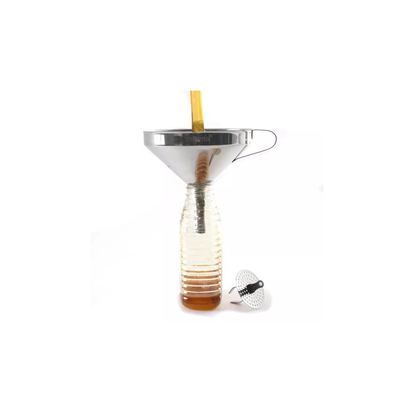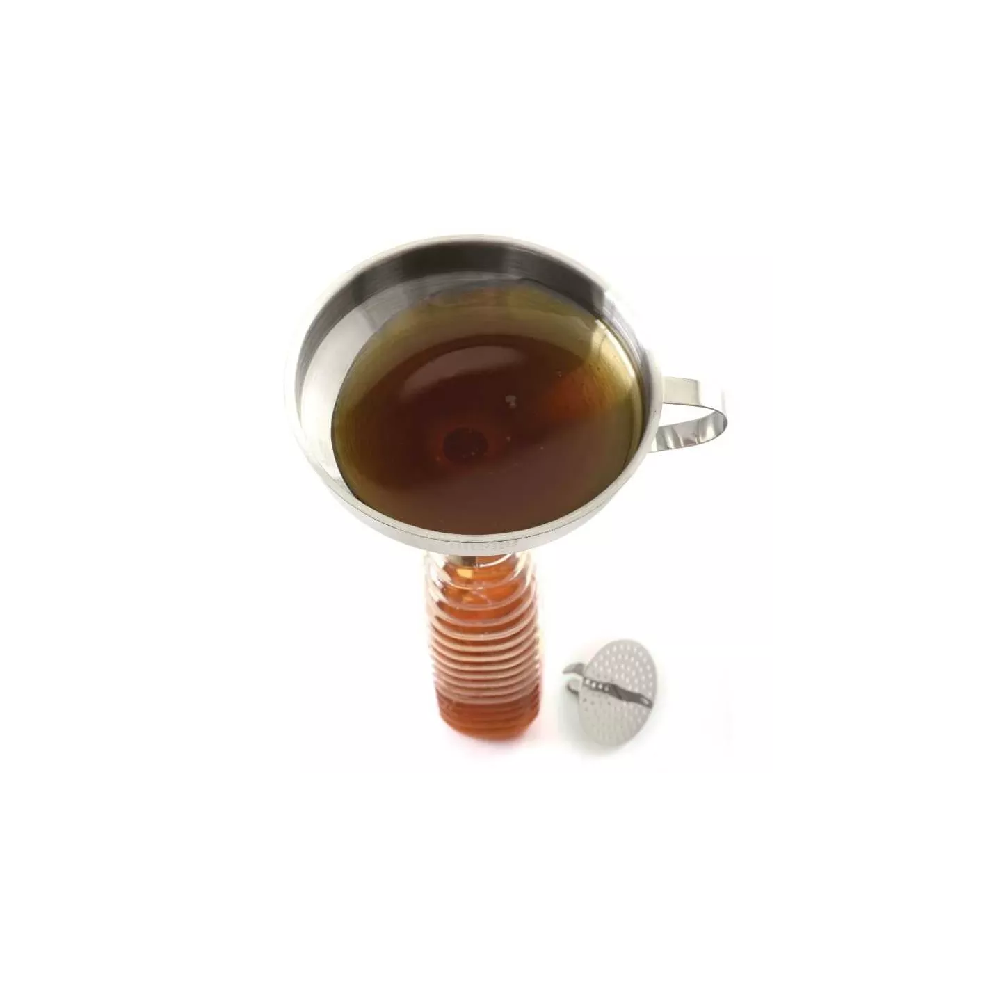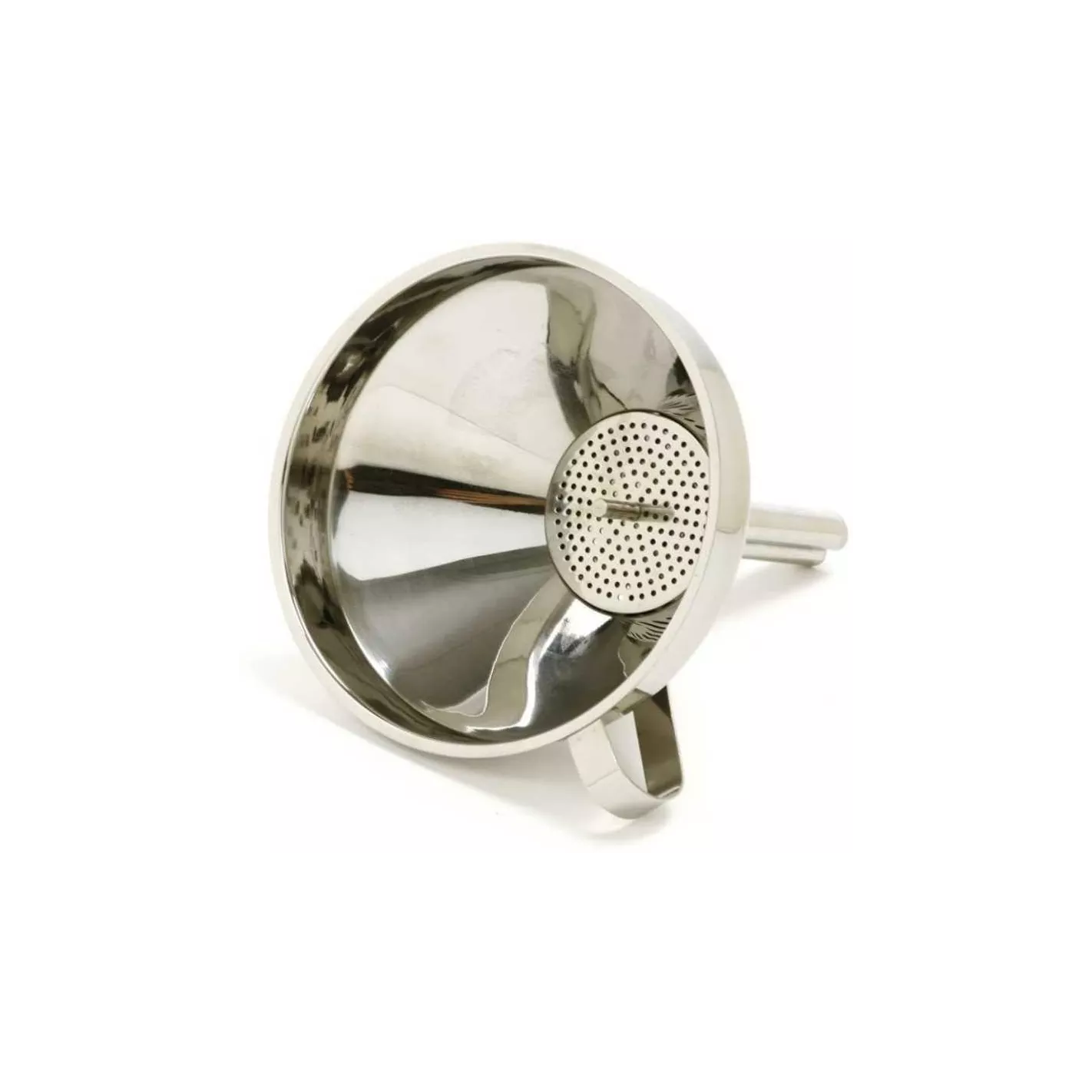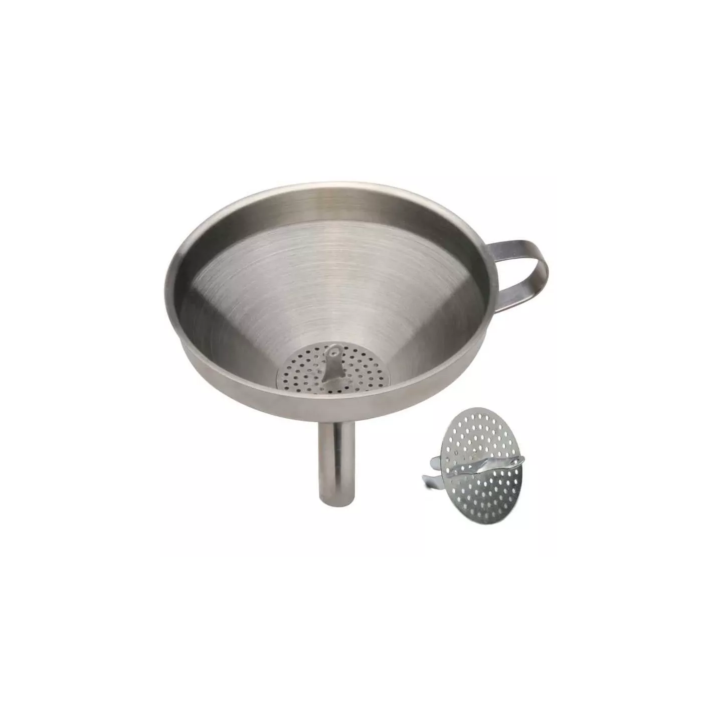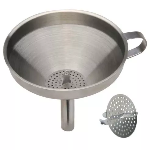 Cuele fácilmente verduras, frutas, atún y pequeñas porciones de pasta con este útil embudo/colador. Hecho de acero inoxidable duradero y resistente, cuenta con un conveniente colador extraíble, que convierte efectivamente su colador en un embudo. También funciona muy bien para llenar botellas, frascos y recipientes estrechos y colar sus salsas, tés, hierbas y café favoritos.