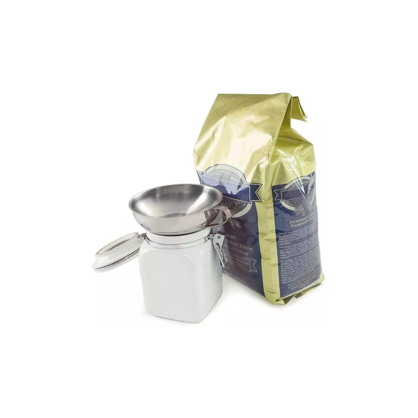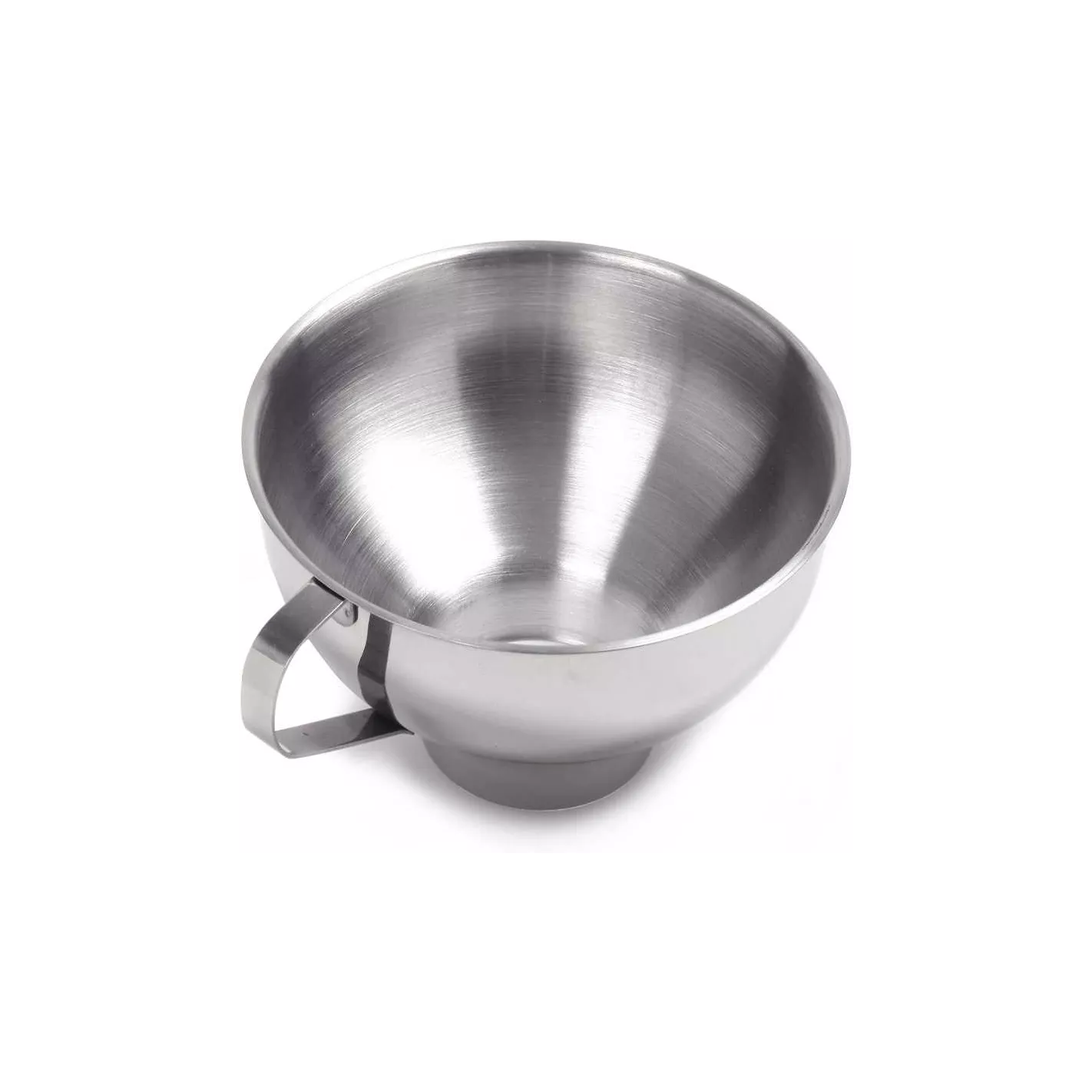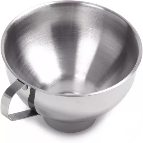 El embudo de boca ancha extra grande es de un material de acero inoxidable, mide 5.5 pulgadas de diámetro x 2.25 pulgadas de alto / 14 centímetros x 5.5 centímetros
