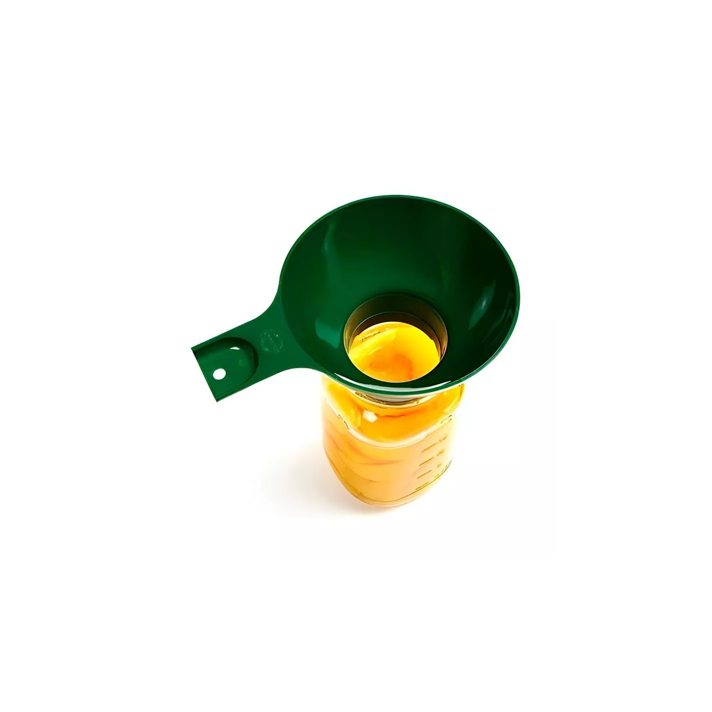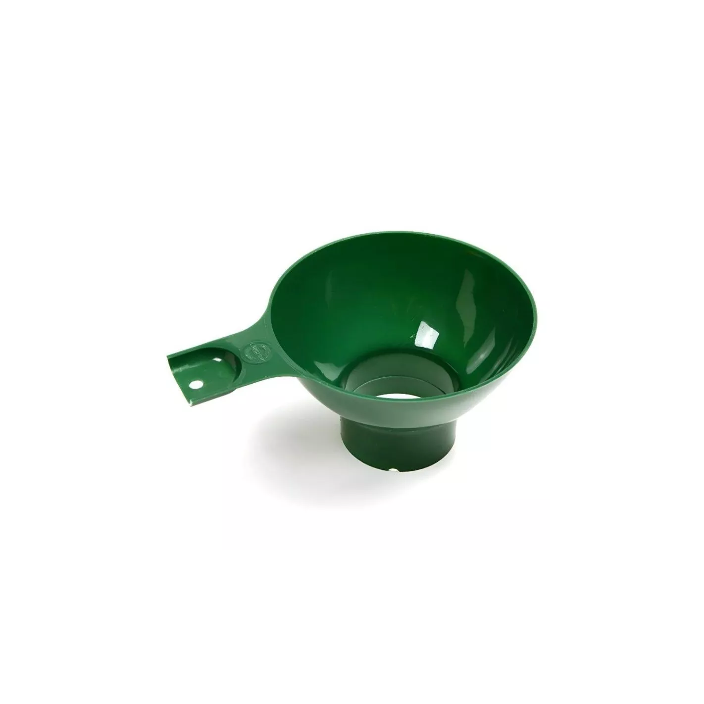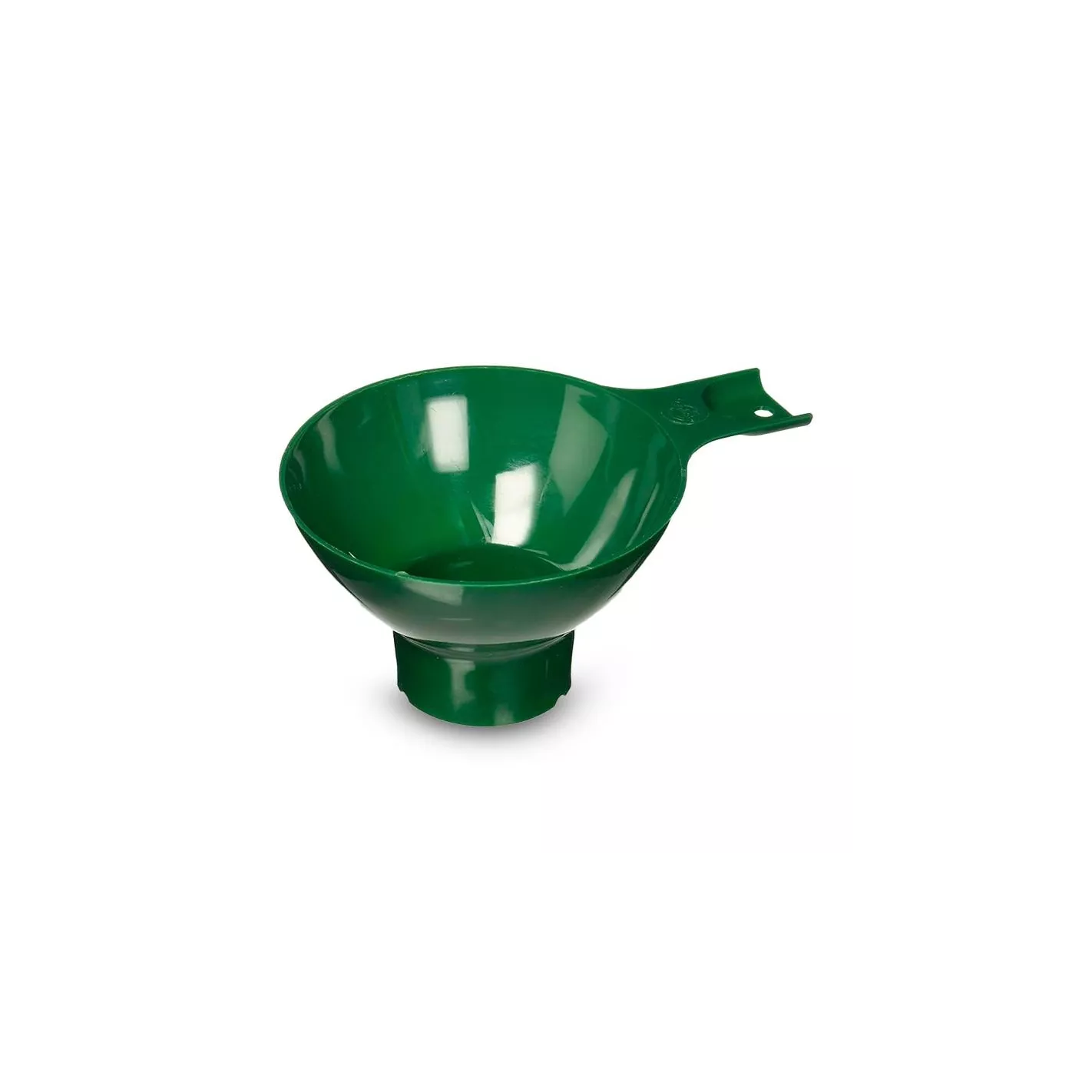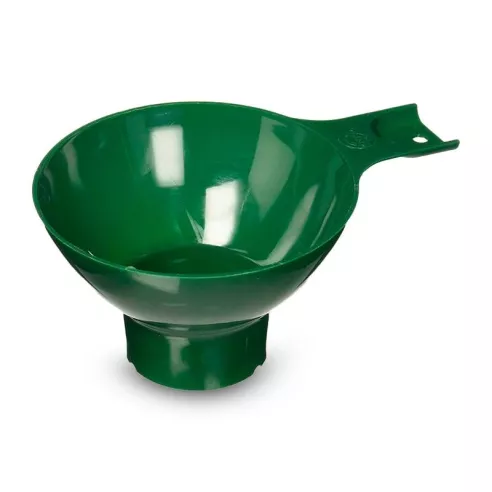 El embudo de boca ancha extra grande es de un material de plástico duradero color verde.
