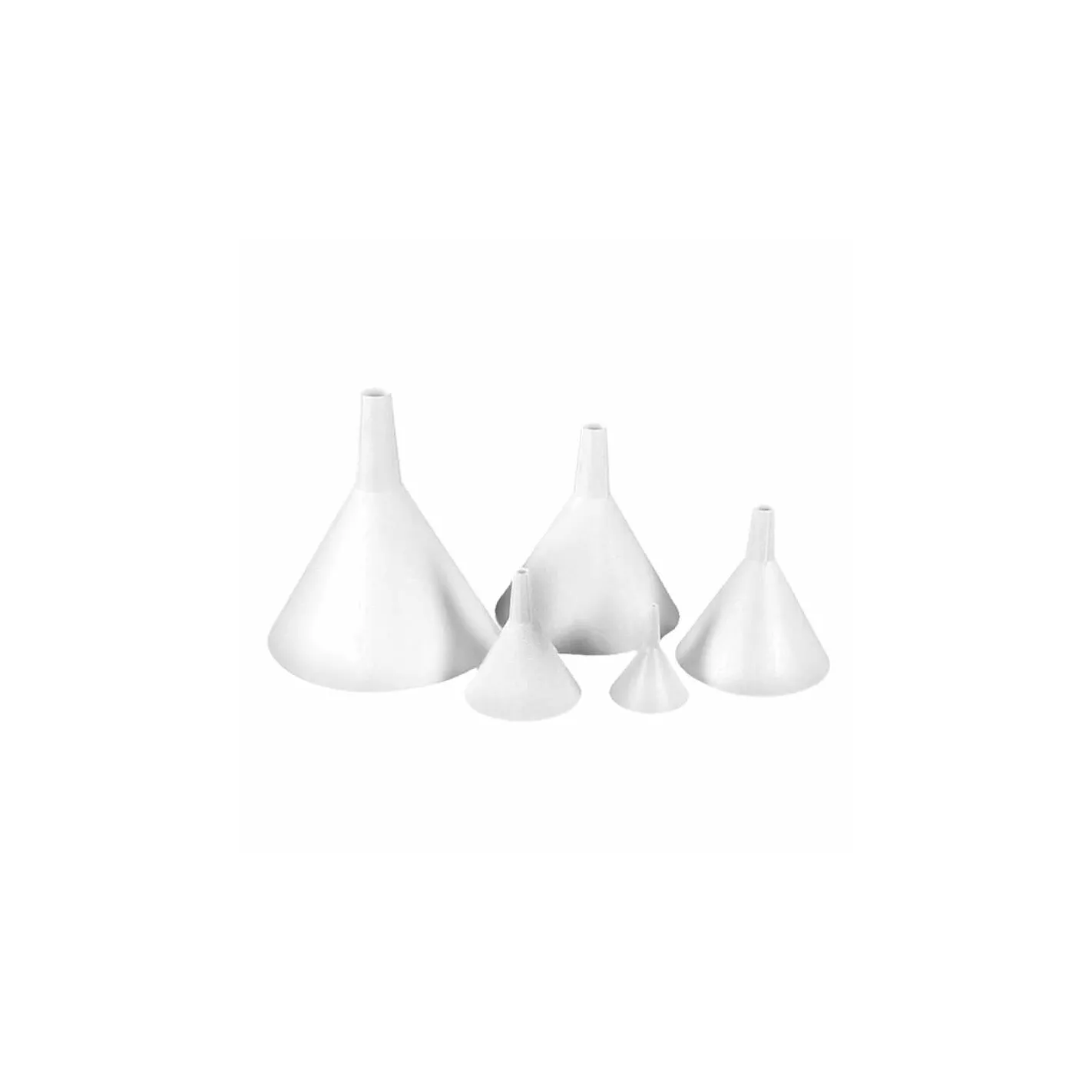 Elimine el desorden de verter ingredientes en botellas y recipientes. El set de 5 embudos de Fox Run está construido de plástico blanco duradero. Los tamaños incluidos de diámetros superiores seguidos del diámetro del vástago son: 5.75 pulgadas, 3/4 pulgadas, 4.75 pulgadas, 5/8 pulgadas, 3.75 pulgadas, 1/2 pulgadas, 2.75 pulgadas, 3/8 pulgadas y 2 pulgadas, todos los tamaños excelentes para transferir líquidos y polvos en frascos de almacenamiento o botellas de servicio con estilo. La amplia gama de tamaños le permite verter fácilmente en frascos y botellas pequeños y grandes. Ideal para rellenar vinagre, aceite de oliva, aderezos para ensaladas, sal / pimienta o sal de ajo, decorar platos y comidas, dispensar chocolate derretido sobre postres e incluso rellenar aceites esenciales, perfumes y más. Obtenga un flujo de líquidos e ingredientes más controlado, consistente y limpio.