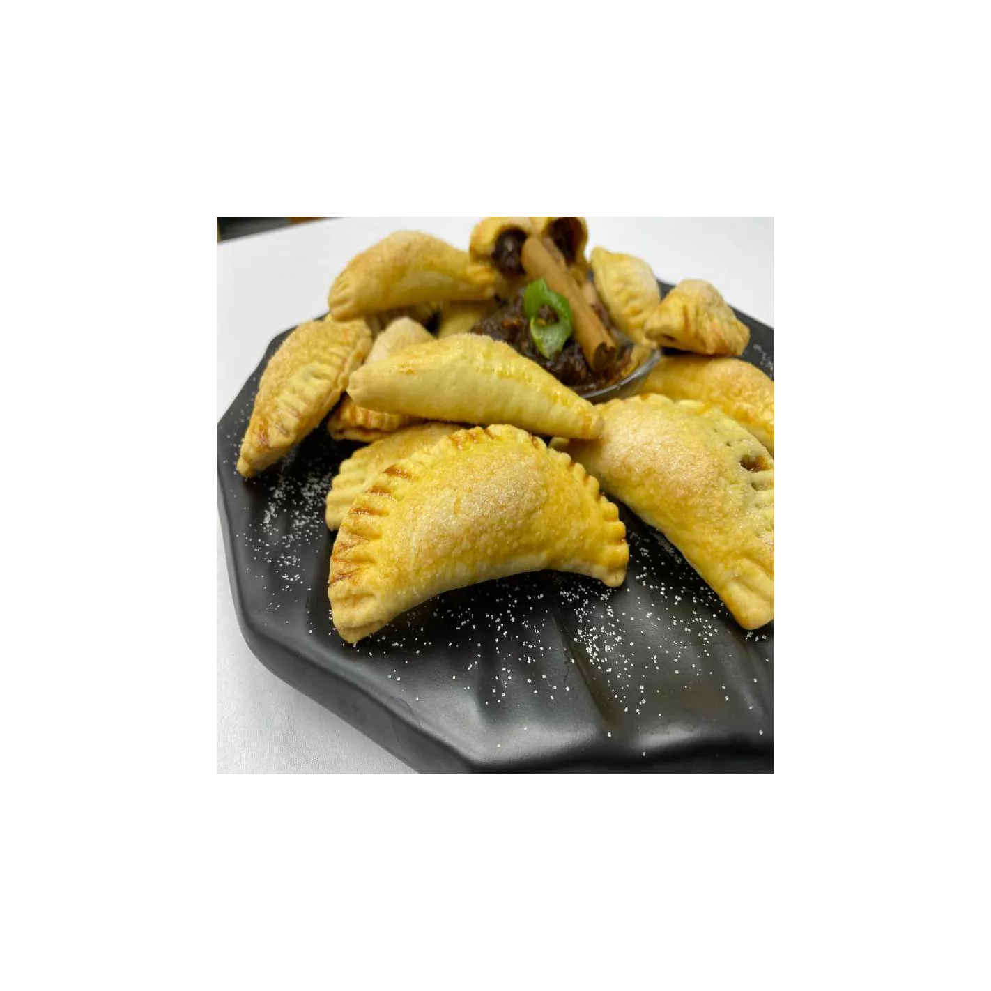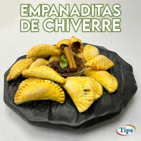 2-Estiramos sobre la mesa, cortamos círculos de 10 cm, rellenamos con miel de chiverre ó el relleno deseado, formamos la empanadita, la barnizamos con huevo y lo llevamos al horno a 350°F durante 25 minutos ó hasta que esté dorado.