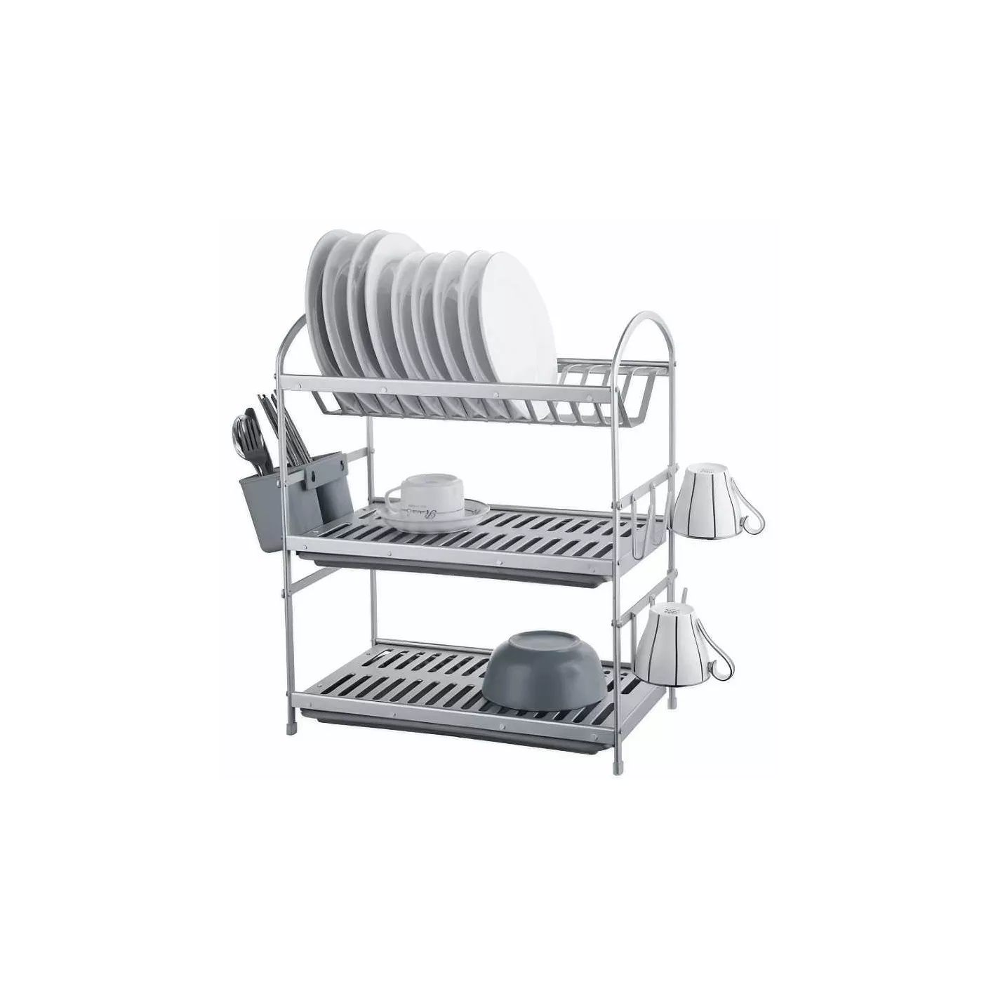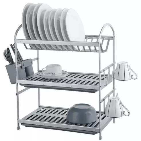 Utiliza este elegante escurridor de platos para colocar tus utensilios de cocina luego de haberlos fregado y limpiado correctamente. Un modelo de 3 niveles que te permitirá organizar las cosas con mucha más facilidad.