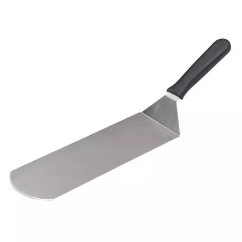 Estas espátulas duraderas están diseñadas para cocinar en grandes cantidades en una parrilla o plancha. Están diseñados para funcionar eficientemente con una variedad de alimentos y cuentan con cuchillas anguladas para un excelente apalancamiento y control. Cada espátula es una herramienta de calidad profesional que sería una excelente adición a cualquier cocina.