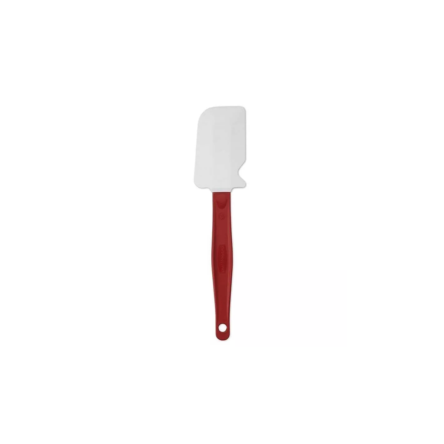 La espátula de silicona y el mango de nylon resisten temperaturas de hasta 500 grados Fahrenheit / 260 grados centígrados y ayudan a prevenir quemaduras. La cuchilla raspadora con muescas raspa limpiamente los lados de las sartenes sin rayarlos, además es resistente a las manchas. Reduce el riesgo de contaminación cruzada durante la preparación de alimentos.