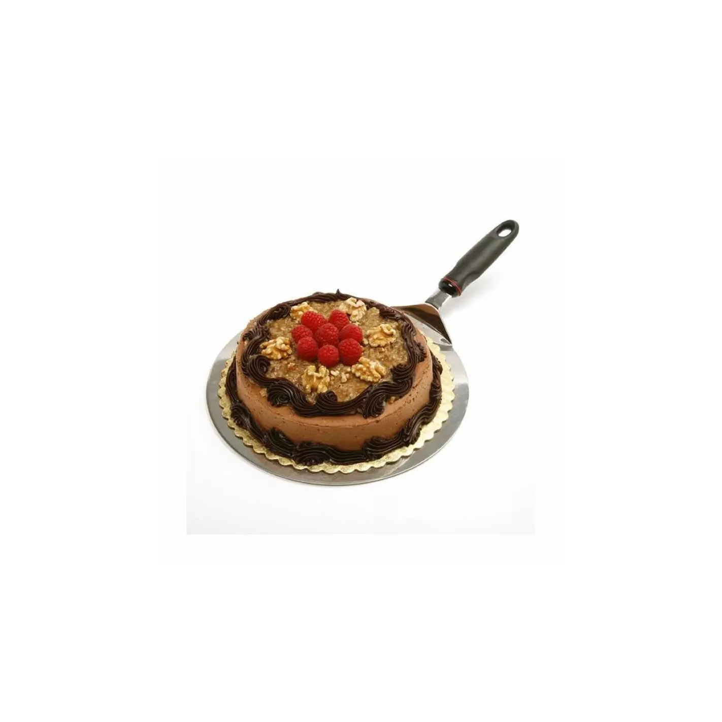 Puede deslizar esta herramienta ancha y redonda debajo de un pastel, tarta o pizza y levantarla con confianza hasta su destino final. No hay flexión en el levantador, por lo que se queda quieto. Sin embargo, la superficie pulida le permite deslizar el pastel, la tarta o la pizza fácilmente cuando esté listo. El mango para mantenerse fresco (con orificio para colgar) está inclinado en el ángulo correcto para quitar la tensión de la muñeca.