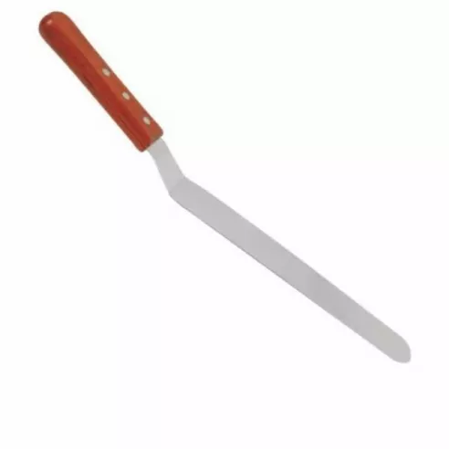 Ideal para una amplia gama de tareas, la espátula es perfecta en cualquier panadería o cocina comercial. Esta espátula angulada está diseñada con una cuchilla plana con puntas redondeadas que le permiten deslizarse fácilmente por los lados y la parte superior del pastel al glaseado.