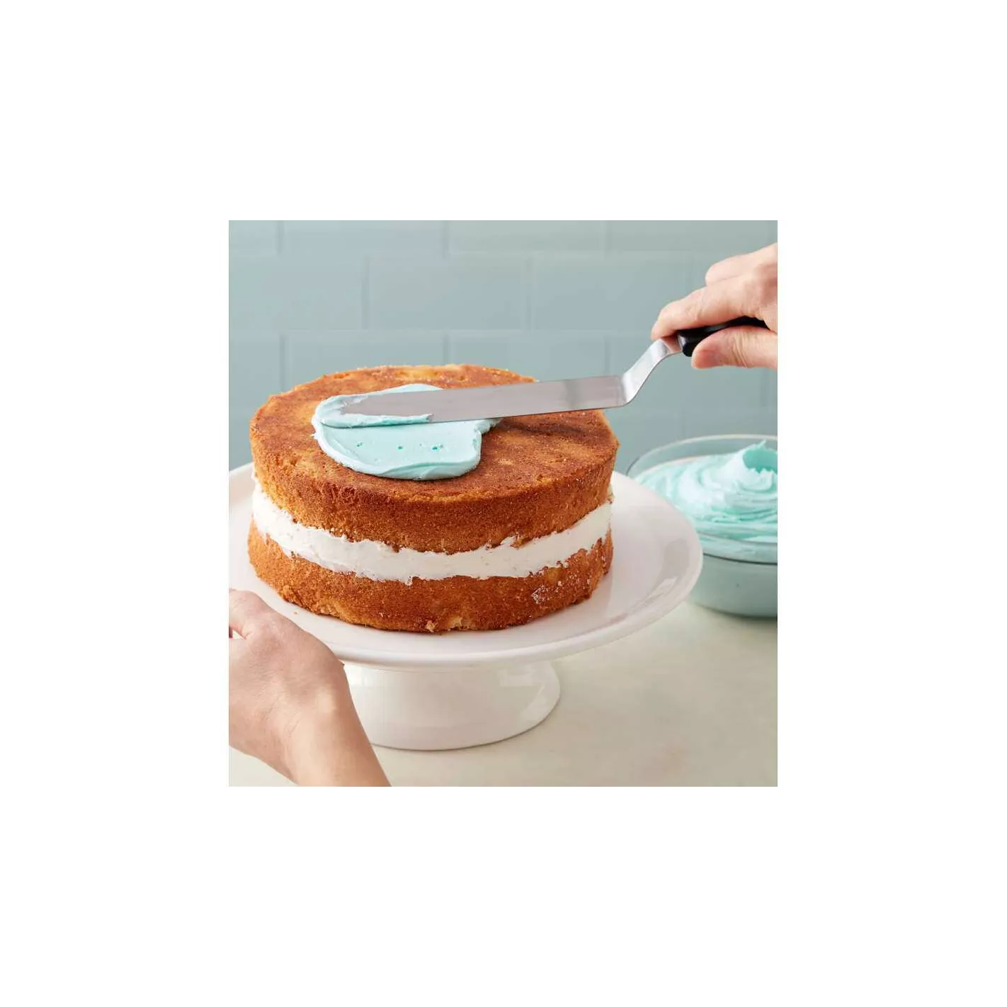 Esta espátula de glaseado es ideal para decorar tus pasteles. La forma en ángulo hace que sea fácil mantener los dedos fuera de la formación de glaseado a medida que avanza, y la cuchilla de acero inoxidable facilita el alisado en los lustres. Esta espátula de pastel de 13 pulgadas está diseñada pensando en el decorador