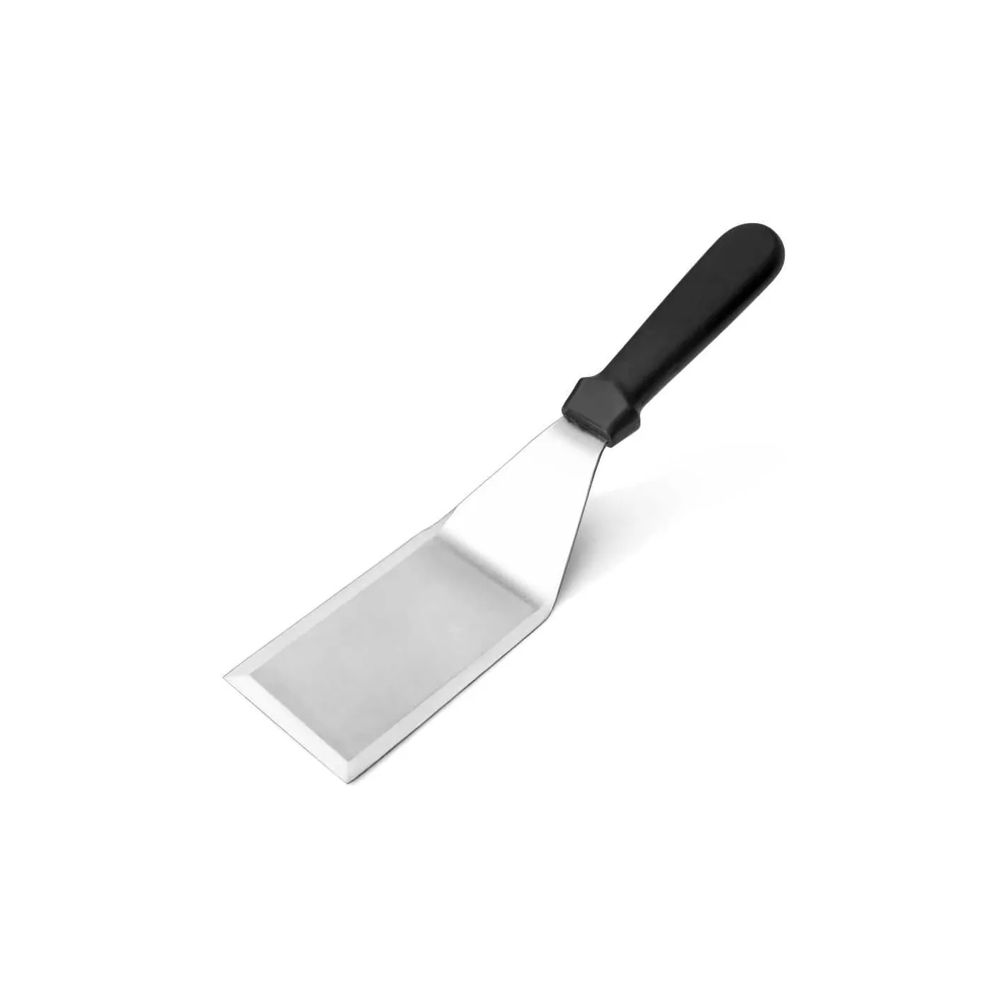 Espátula de servir fabricada con acero inoxidable de alta calidad. La misma sosporta el calor de forma natural para poder trabajar cómodamente mucho tiempo en la cocina y su mango viene en color negro.