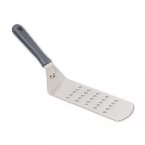 La espátula está fabricada en acero inoxidable y su mango en plástico de excelentes medidas higiénicas. Apta para poder recolectar los fritos del sartén o de la parrilla y así poder escurrirlos de forma uniforme para tener un producto más saludable para el consumo.