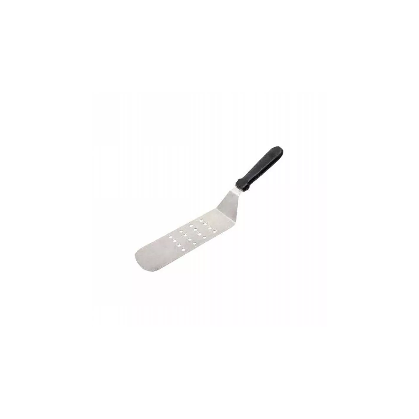 La espátula está fabricada en acero inoxidable y su mango en plástico de excelentes medidas higiénicas. Tiene una medida de 11 pulgadas / 28 centímetros. Apta para poder recolectar los fritos del sartén o de la parrilla y así poder escurrirlos de forma uniforme para tener un producto más saludable para el consumo.